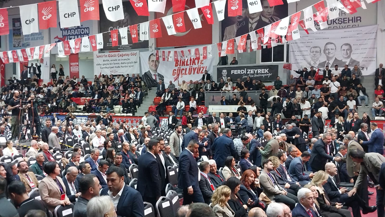 İl başkanlığı için ismi geçen ve Genel Başkan Özgür Özel’in uyarısıyla adaylıktan çekildiği öne sürülen CHP Buca İlçe Başkanı Çağdaş Kaya, kongre salonuna kalabalık bir grupla birlikte giriş yaptı.