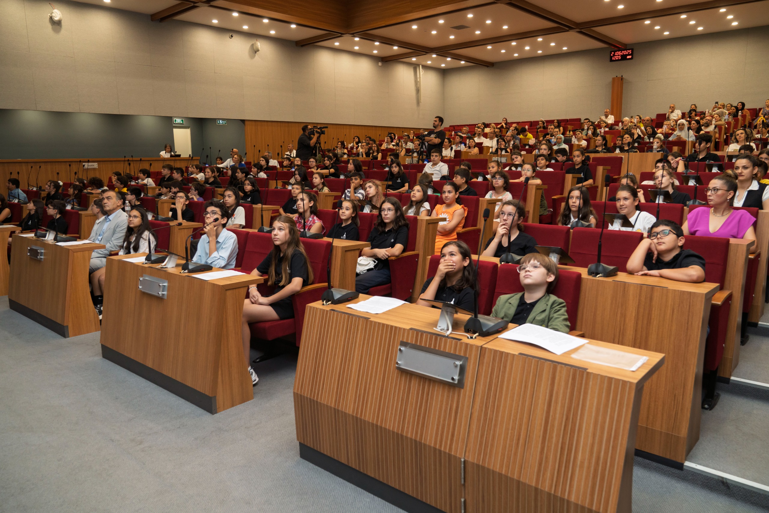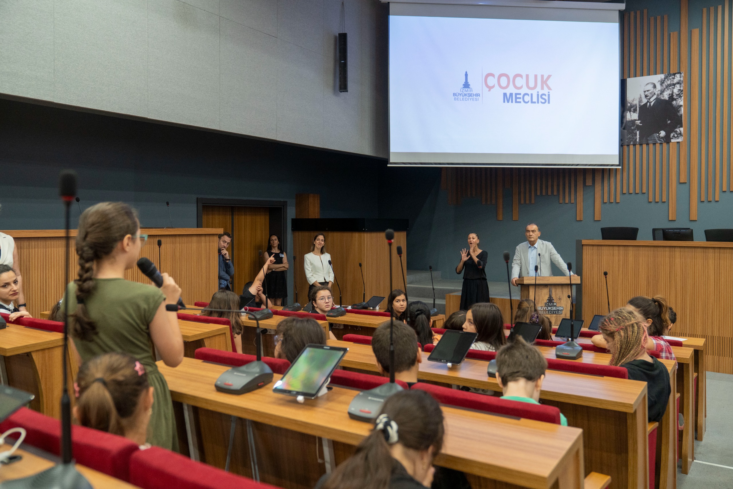 “Çocuk Dostu Kent” ilkesiyle çalışan İzmir Büyükşehir Belediyesi Çocuk Meclisi kapanış oturumu, Kültürpark 4 No’lu Hol’deki meclis toplantı salonunda düzenlendi.