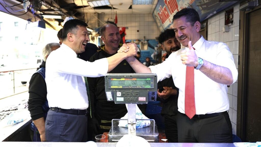 Hamza Dağ ve Cumhur İttifakı Kemalpaşa Belediye Başkan Adayı Galip Atar, pazar yerindeki bir balık esnafında tezgah başına geçti. Renkli görüntülere sahne olan anlarda Hamza Dağ ve Galip Atar, müşterilere balık tarttı.