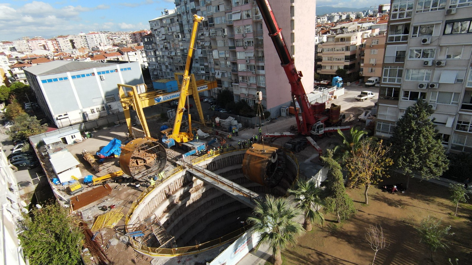 General Asım Gündüz İstasyonu’ndan 2 bin 130 metre kazan ve Üçyol Hat Başı Şaftı’na ulaşan 450 ton ağırlığındaki tünel açma makinesi (TBM) parçalar halinde General Asım Gündüz İstasyonu’na taşınıyor. İzmir Büyükşehir Belediyesi, taşıma işlemi sırasında trafik için gerekli uyarılarda bulunarak önlemleri de aldı.