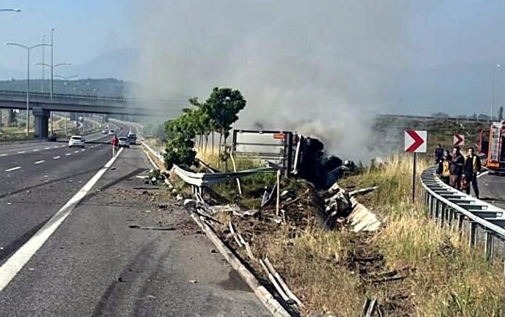 Kazada TIR, kupa kısmından alev aldı. Yoldan geçen bazı sürücüler yangın tüpleriyle alevlere müdahale etmeye çalıştı. İhbar üzerine bölgeye itfaiye ve jandarma ekipleri sevk edildi. Yangın itfaiyenin çalışmasıyla söndürüldü. Sürücü Y.B. kazayı yara almadan atlatırken, TIR’ın kupa kısmı kullanılamaz hale geldi.