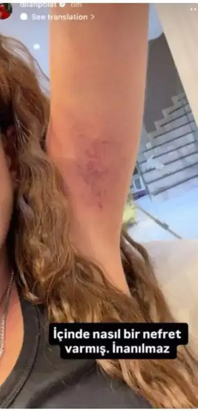 Dilan Polat, Instagram hesabı üzerinden yayımladığı hikayelerde yaşadığı dehşeti takipçileriyle paylaştı. Saçlarının koparıldığını ve kollarının tırmalandığını ileri süren Polat, darp izlerini gösteren fotoğrafları kanıt olarak sundu. Paylaşımlarında oldukça öfkeli olduğu gözlenen ünlü isim, şu ifadeleri kullandı: