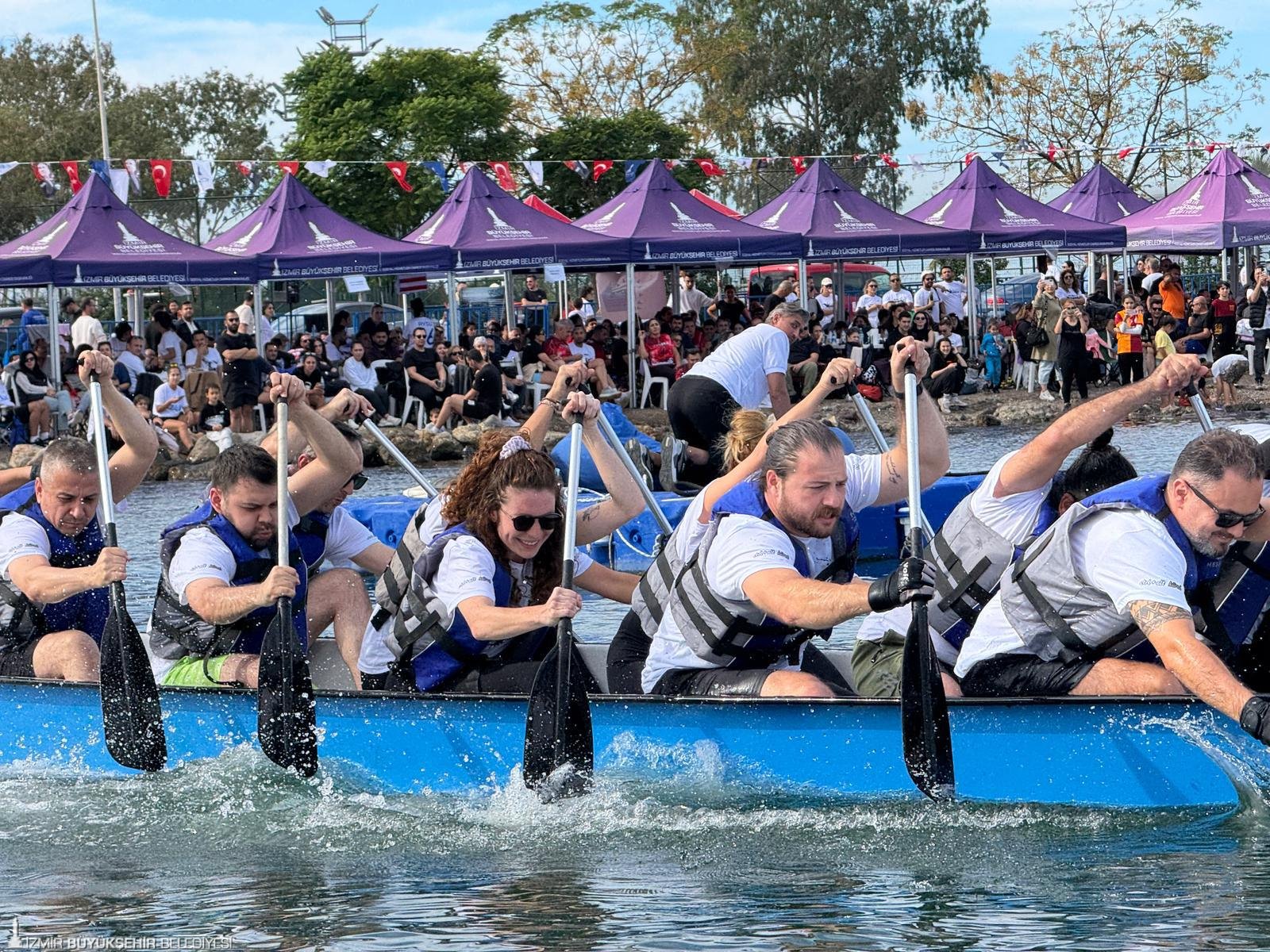 İzmir Büyükşehir Belediyesi birimleri arasında bu yıl üçüncüsü düzenlenen Dragon Tekne Yarışması heyecan dolu anlara sahne oldu.