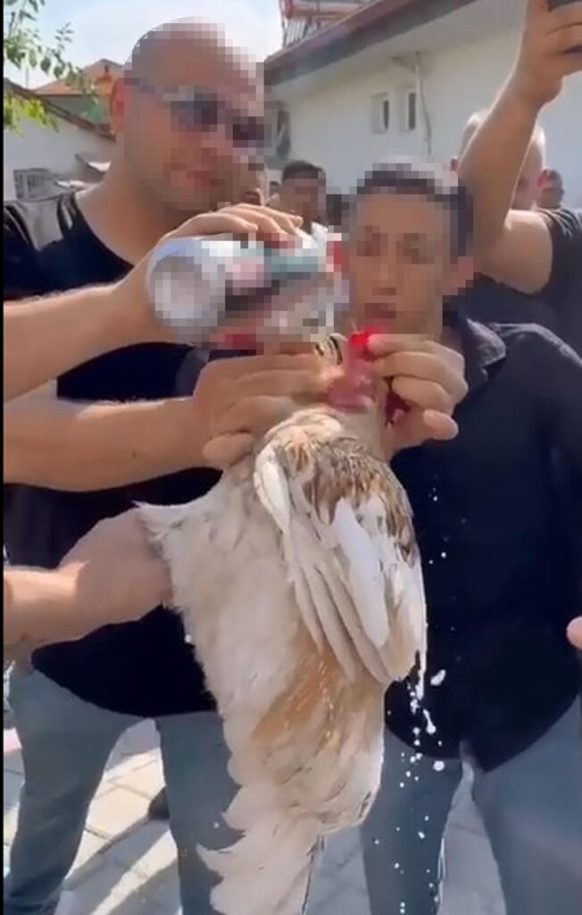 Pamukkale İlçe Jandarma Komutanlığı ekipleri görüntüleri inceleyerek, horozun ağzını açarak içki içiren 5 kişiyi tespit etti.