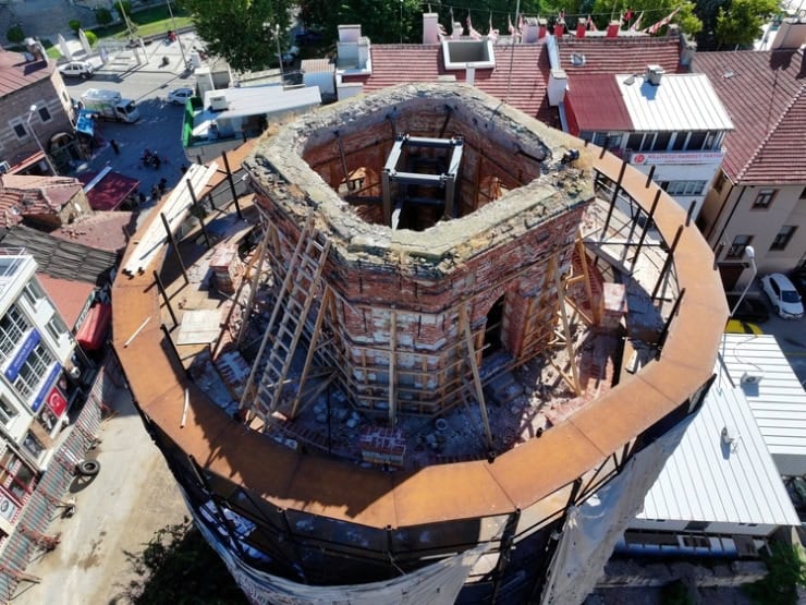 Kule ve çevresindeki ören yerinde Kültür ve Turizm Bakanlığı’nın 2021’de başlattığı restorasyon sürüyor.