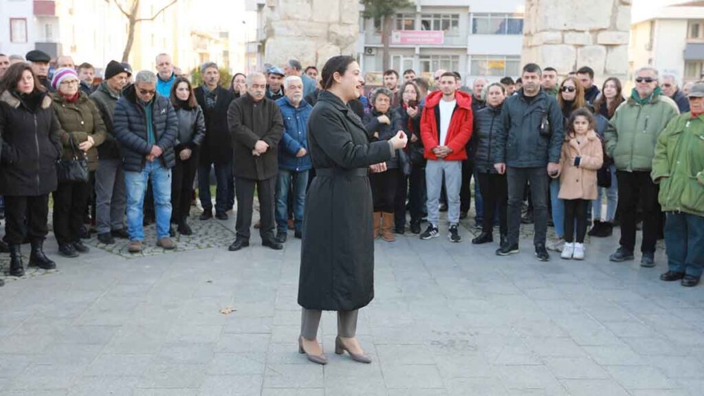 Efes Selçuk Belediye Başkanı Filiz Ceritoğlu Sengel burada yaptığı konuşmada anayasa kavramına dikkat çekti. Başkan Ceritoğlu Sengel; “Karanlığa teslim olmak istemiyorsak tek başına meydanlarda olmak yetmiyor” dedi.
