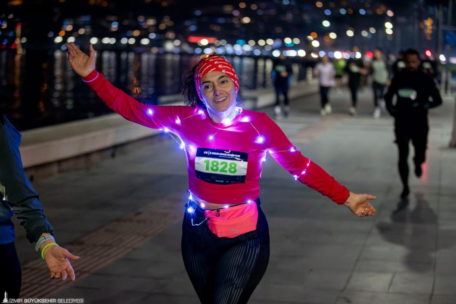 İzmir Büyükşehir Belediyesi, yılın en uzun gecesi 21 Aralık’ta 6,5 kilometrelik koşu düzenledi. En Uzun Gece Koşusu’na katılan İzmirliler, vücutlarına sardıkları ışıklarla renkli görüntüler oluşturdu.