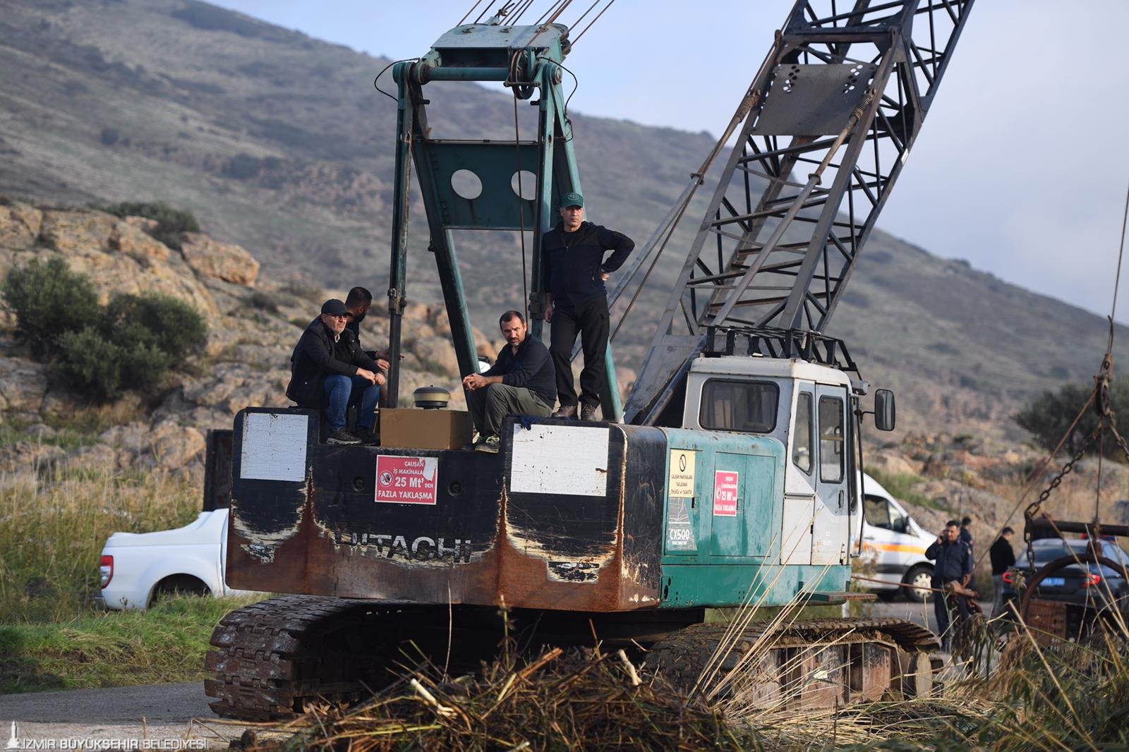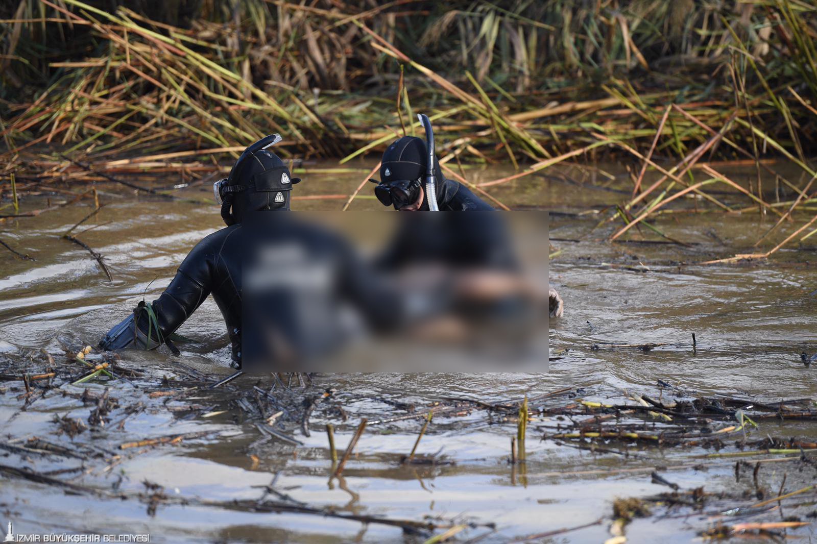 İzmir Büyükşehir Belediyesi İtfaiye Dairesi Başkanlığı, AFAD, Jandarma, Sahil Güvenlik ve Komando ekipleri, İzmir Emniyet Müdürlüğü Deniz Limanı Şube Müdürlüğü’ne bağlı kurbağa adam ekibi, 707 personel, 43 dalgıç ve 5 dron ile dere yatağı ve çevresindeki sazlık alanlarda arama kurtarma çalışmaları aralıksız sürdürüldü.