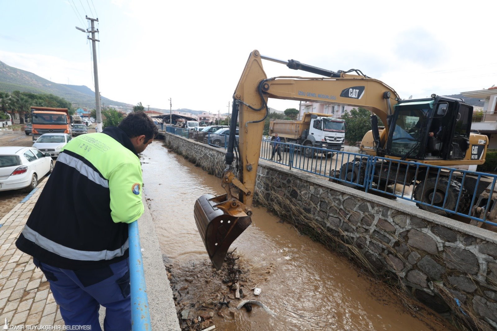 Dağlık kesimlerden selle birlikte sürüklenerek dere yataklarını tıkayan ağaç dalları ve kaya parçalarının temizlenmesi için de yoğun çaba harcanıyor. Dağlardan taşınan toprakla tıkanan ızgaraların açılması için yoğun bir çalışma yürütülüyor. Ayrıca suyun şiddeti nedeniyle zarar gören dere yataklarının onarılması için İZSU ekipleri çalışmalara başladı.