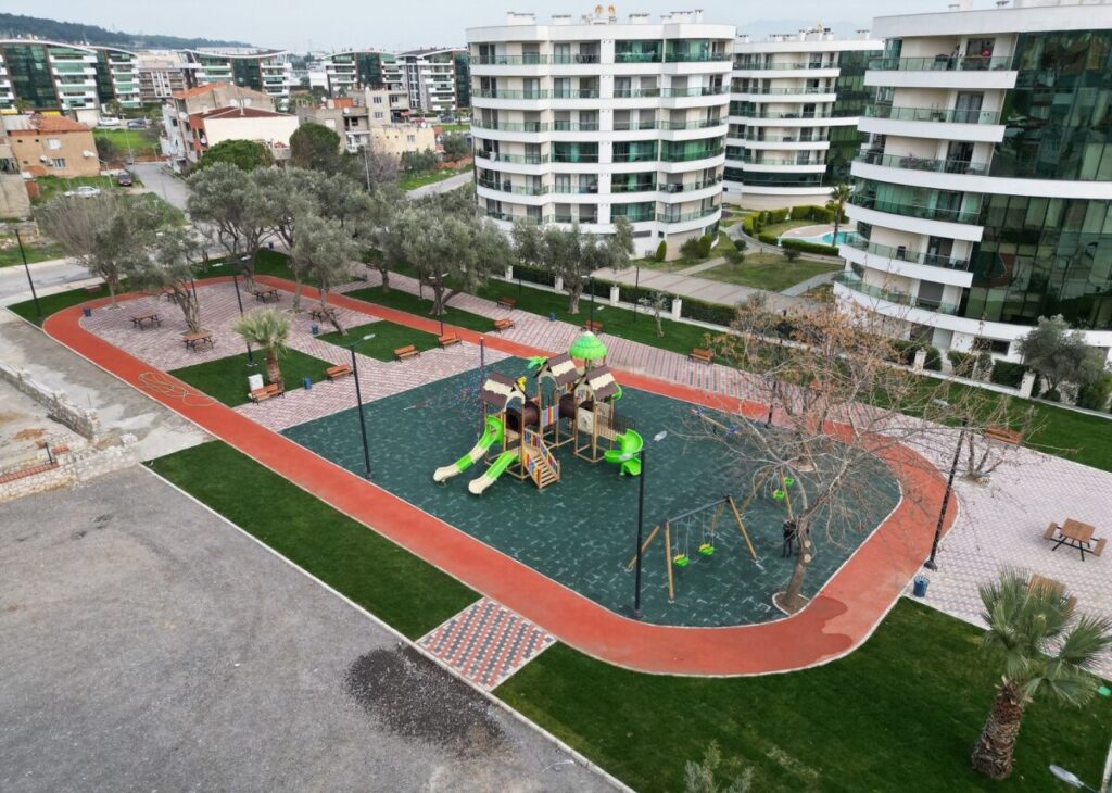 Parktaki mevcut zeytin ağaçları da korunarak yenilenen parkta, yürüyüş parkuru oluşturuldu, eskiyen bankların yerine modern oturma grupları konuldu. Parka çim serimi yapılarak yeşil alan miktarı da artırıldı. Parktaki çocuk oyun alanı büyütülerek çocukların güvenli bir ortamda oynayabilmeleri için zemini kauçukla kaplandı. Zemin çalışmalarının ardından yeni oyun gruplarının montajı yapıldı.