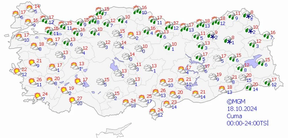 Parçalı ve çok bulutlu, sabah saatlerinden sonra aralıklı sağanak yağışlı