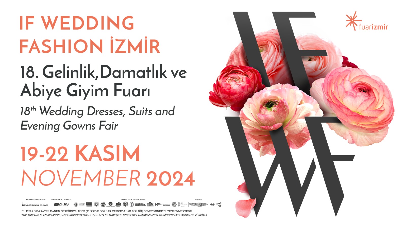 İzmir Büyükşehir Belediyesi ev sahipliğinde, İZFAŞ tarafından Ege Giyim Sanayicileri Derneği (EGSD) partnerliğinde düzenlenen IF Wedding Fashion İzmir; T.C. Ticaret Bakanlığı, T.C. Küçük ve Orta Ölçekli İşletmeleri Geliştirme ve Destekleme İdaresi Başkanlığı (KOSGEB), Türkiye Odalar ve Borsalar Birliği (TOBB), İzmir Ticaret Odası (İZTO), Ege Bölgesi Sanayi Odası (EBSO), İzmir Ticaret Borsası (İTB), Ege İhracatçı Birlikleri (EİB), İzmir Esnaf ve Sanatkârlar Odası Birliği (İEOSB), Moda ve Hazır Giyim Federasyonu (MHGF), Mimar Kemalettin Moda Merkezi Derneği, Moda Tekstil Konfeksiyoncular Sanayici İşadamları Derneği (MTK), İzmir Terziler ve Konfeksiyoncular Odası (İZTERKON), İzmir Moda Tasarımcıları Derneği (İMOD) destekleriyle gerçekleştiriliyor.