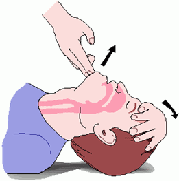 Hava yolu açıklığı sağlanırken, hasta/yaralı baş, boyun ve gövde ekseni düz olacak şekilde yatırılmalıdır. Eğer bilinç kaybı varsa, önce ağız içine gözle bakarak yabancı cisim varsa çıkarılmalıdır. Daha sonra, bir el alnına, diğer elin iki parmağı çene kemiğinin üzerine yerleştirilerek baş geriye doğru itilmeli ve çene yukarı pozisyonu verilmelidir. Bu işlemler sırasında, sert hareketlerden kaçınılmalıdır.