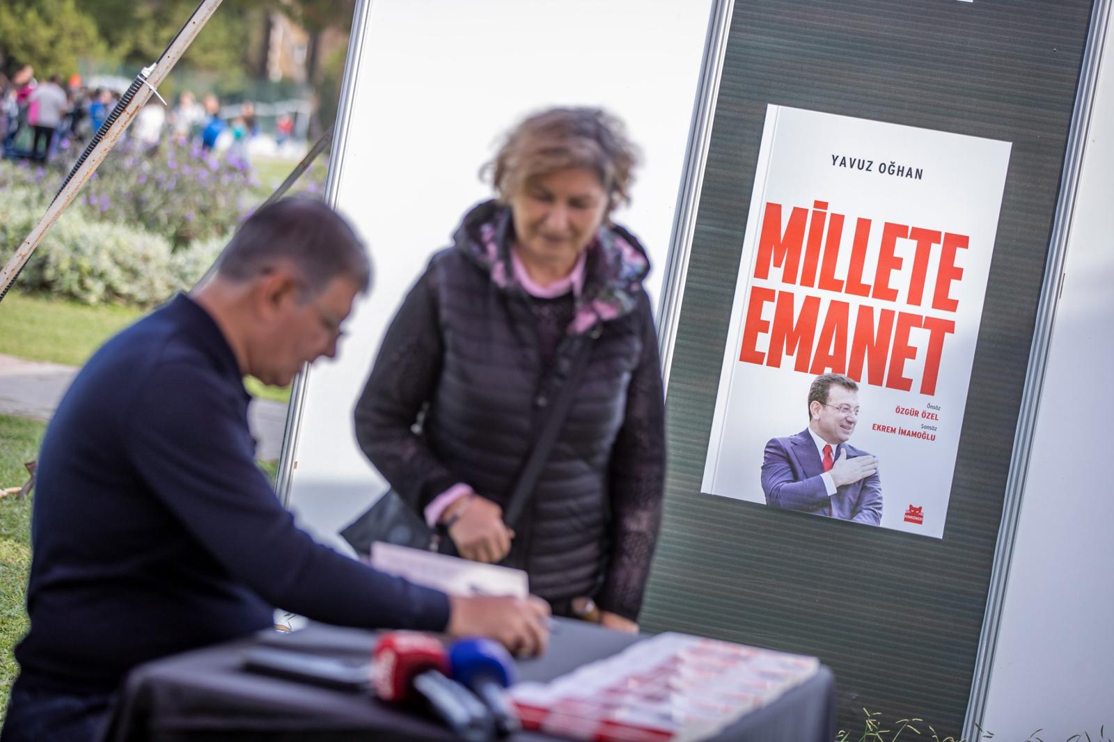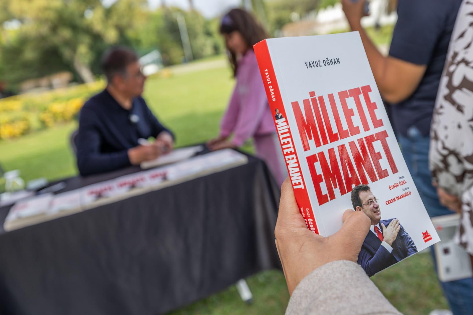 İzmir Büyükşehir Belediye Başkanı Dr. Cemil Tugay, Kültürpark’ta kapılarını açan İZKİTAPFEST  – 6. İzmir Kitap Fuarı kapsamında, tutuklu İstanbul Büyükşehir Belediye Başkanı Ekrem İmamoğlu adına gazeteci Yavuz Oğhan’ın kaleme aldığı “Millete Emanet” kitabını İzmirliler için imzaladı.