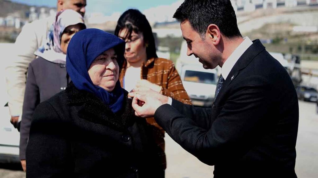 Konuşmaların ardından CHP’ye üye olan yurttaşların rozetlerini CHP Bayraklı Belediye Başkan adayı İrfan Önal taktı.