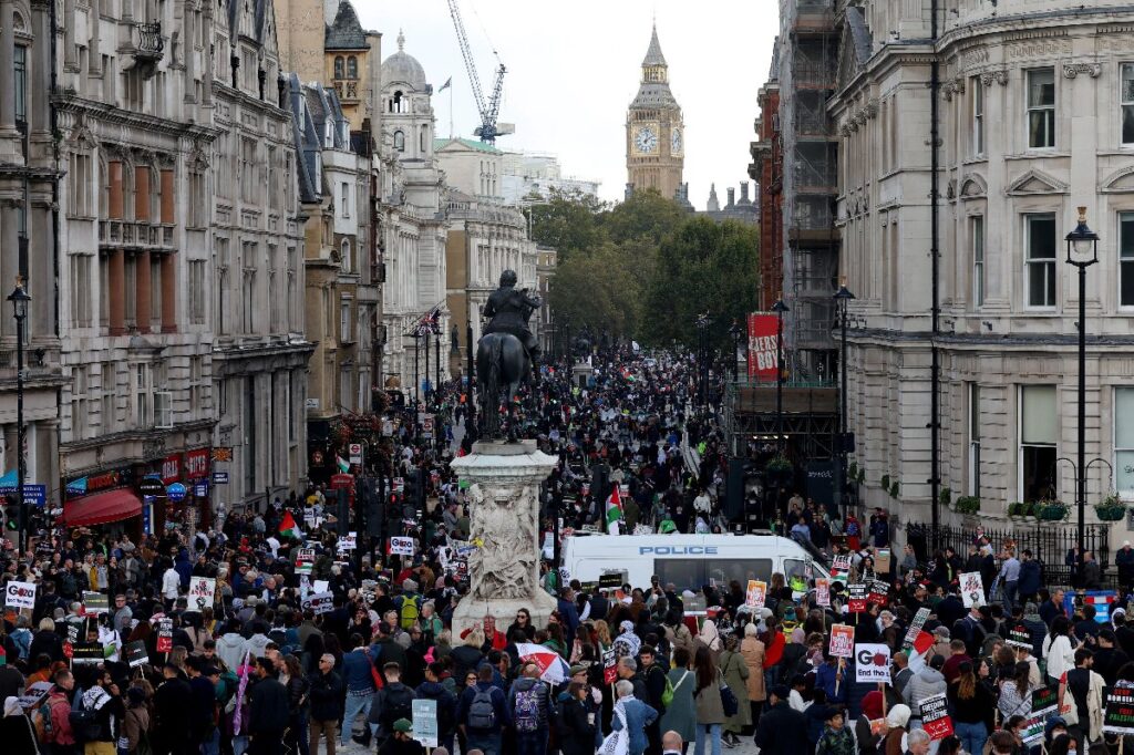 Göstericiler, İngiliz kamu yayın kuruluşu BBC’nin merkezinin önünde toplandı ve Filistin’e destek sloganları attı. Polis, organizatörleri, İngiltere’de “terör örgütü” olarak kabul edilen Hamas’a destek pankartı açmamaları konusunda uyardı. Gösteriye 1000’den fazla polis de güvenlik sağladı.