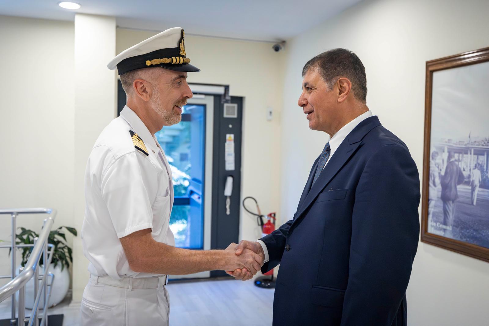 İzmir Büyükşehir Belediye Başkanı Dr. Cemil Tugay, İtalyan Donanması’na ait ITS Trieste’nin Gemi Komutanı Albay Francesco Marzi ve beraberindeki heyeti makamında kabul etti.