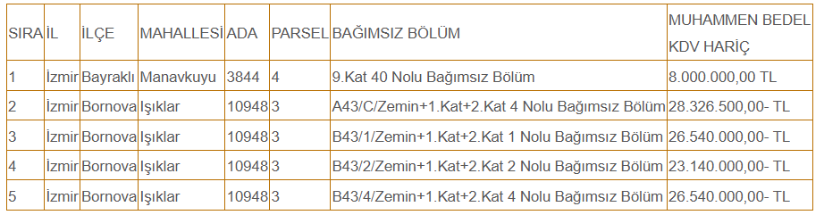 Demokrat Gündem- İZBETON, daha önce satışı gerçekleşmeyen Bayraklı ve Bornova’daki lüks taşınmazları yeniden alıcıyla buluşturuyor. Satış listesinde: