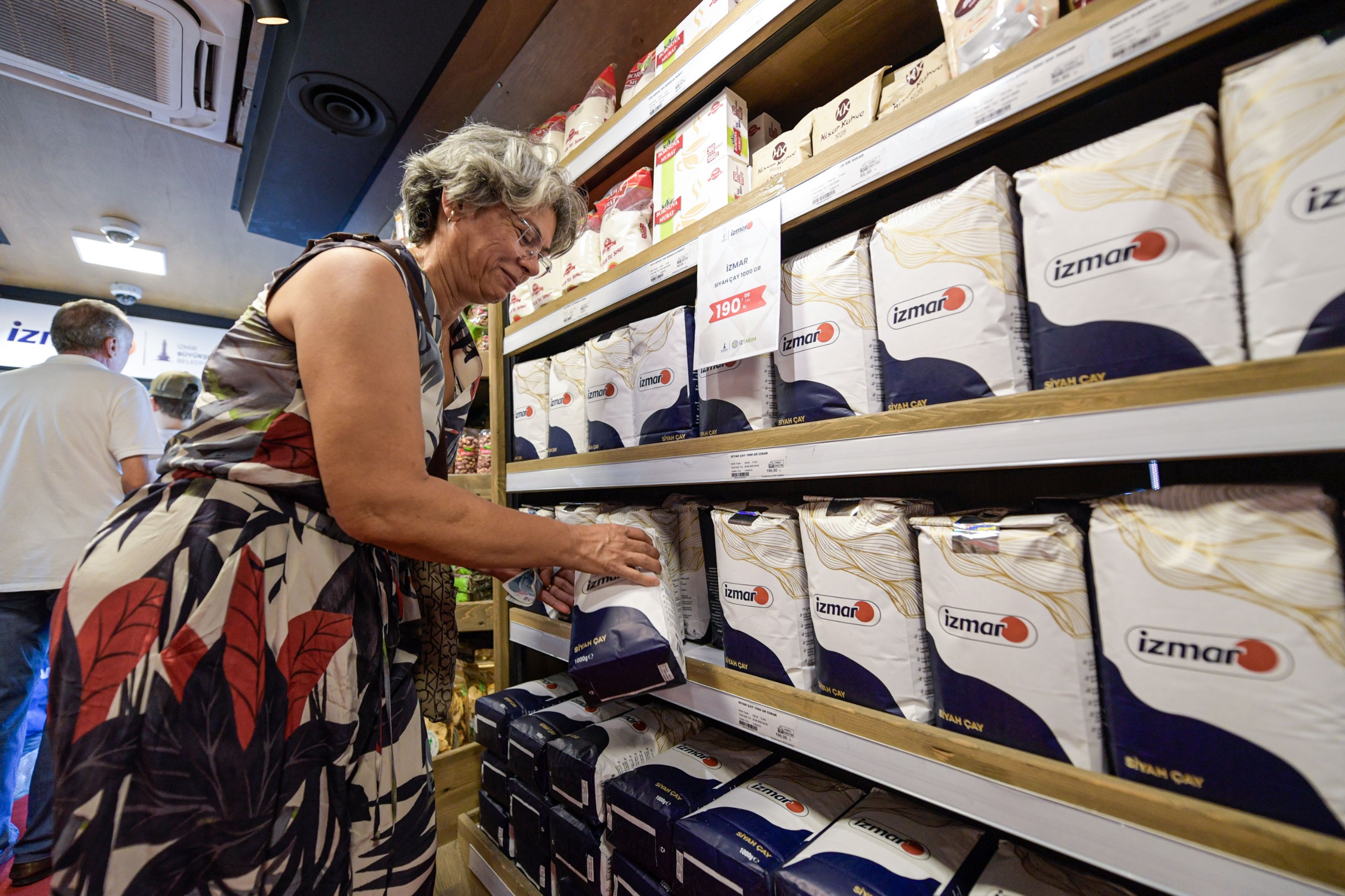 İzmir Büyükşehir Belediyesi’nin tanzim satış mağazası İZMAR, 94. İzmir Enternasyonal Fuarı’nda ilk kez İZMAR Çay’ı tanıttı. Tirebolulu çiftçinin alın teriyle üretilerek doğal yöntemlerle paketlenen çaylar, uygun fiyatla doğrudan İzmirlinin sofrasına ulaştı. Fuardaki mobil İZMAR ve kent genelindeki 10 mağazada kilogramı 190 TL’den satılan çay, kalitesiyle 94. İEF ziyaretçilerinden tam not aldı.
