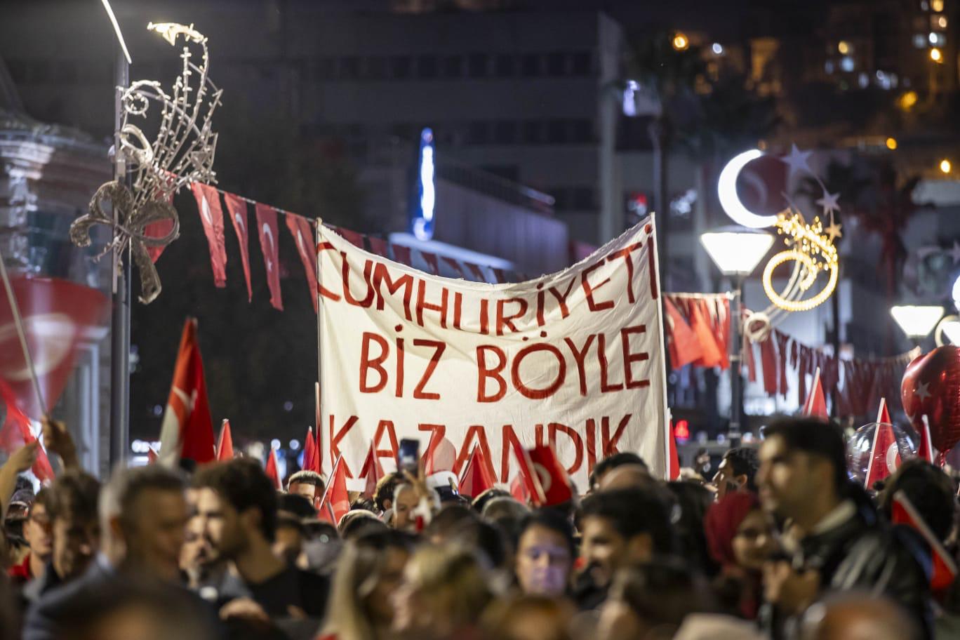 Protokol ve yurttaşlardan oluşan kortej, Hükümet Konağı önünde saat 20.00’de toplanarak İzmir Büyükşehir Belediye Bandosu eşliğinde Alsancak istikametine doğru yürüyecek. Kortej, Konak Pier AVM’nin önünde 350 metrelik Türk bayrağı ve fener alayı ile birleşecek ve dev yürüyüş Cumhuriyet Meydanı’na doğru devam edecek. Cumhuriyet coşkusu, saat 21.00’de Gündoğdu Meydanı’nda düzenlenecek Haluk Levent konseri ile doruğa çıkacak.