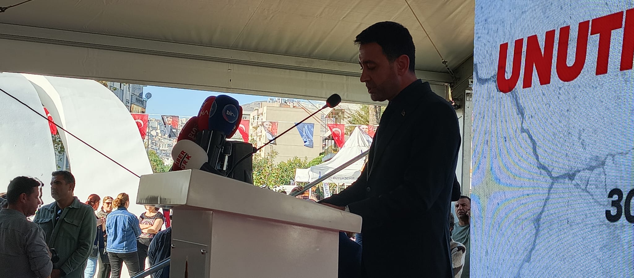 “Bugün burada sadece kayıplarımızı değil, aynı hataların bir daha yapılmaması için taşıdığımız sorumluluğu da hatırlıyoruz. İzmir bilimin rehberliğinde, emeğin ışığında ve dayanışmanın gücüyle yeniden ayağa kalkacak.