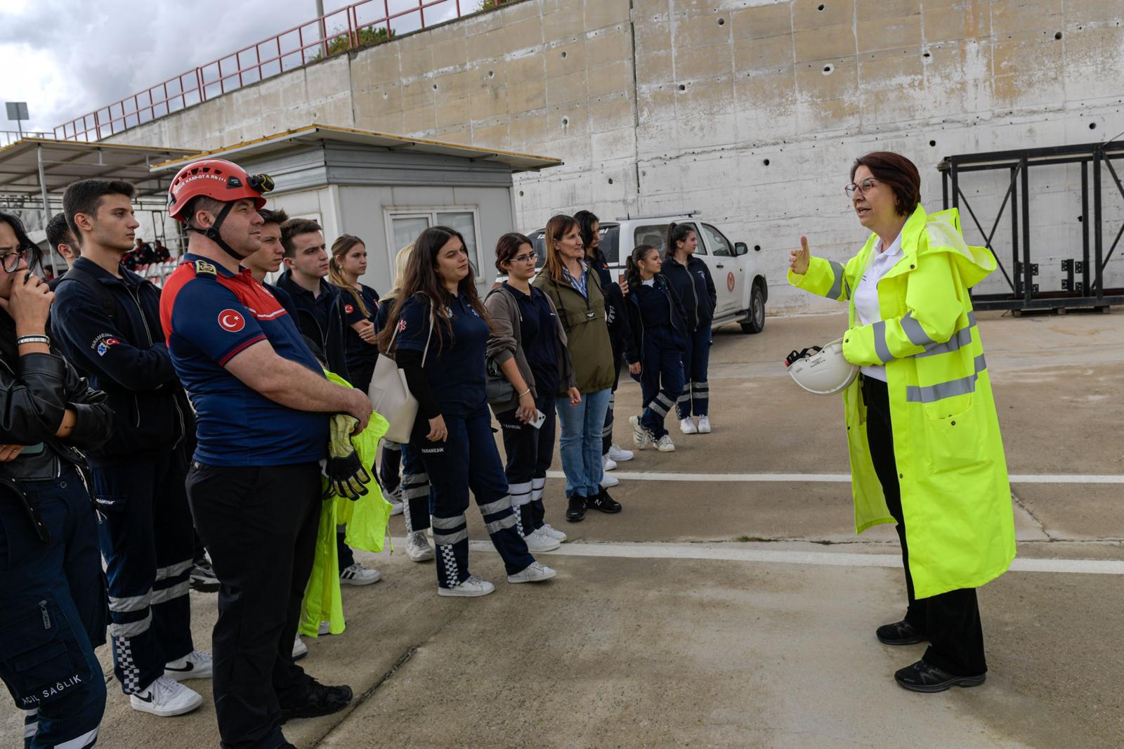 Sağlıkçılar; İzmir Büyükşehir Belediyesi İtfaiye Dairesi Başkanlığı’nın yangınlardan doğal afetlere, arama-kurtarmadan ilkyardıma kadar birçok konuda acil durum eğitiminin verildiği Toros Yangın ve Doğal Afet Eğitim Merkezi’nde düzenlenen deprem ve yangın tatbikatına katıldı.