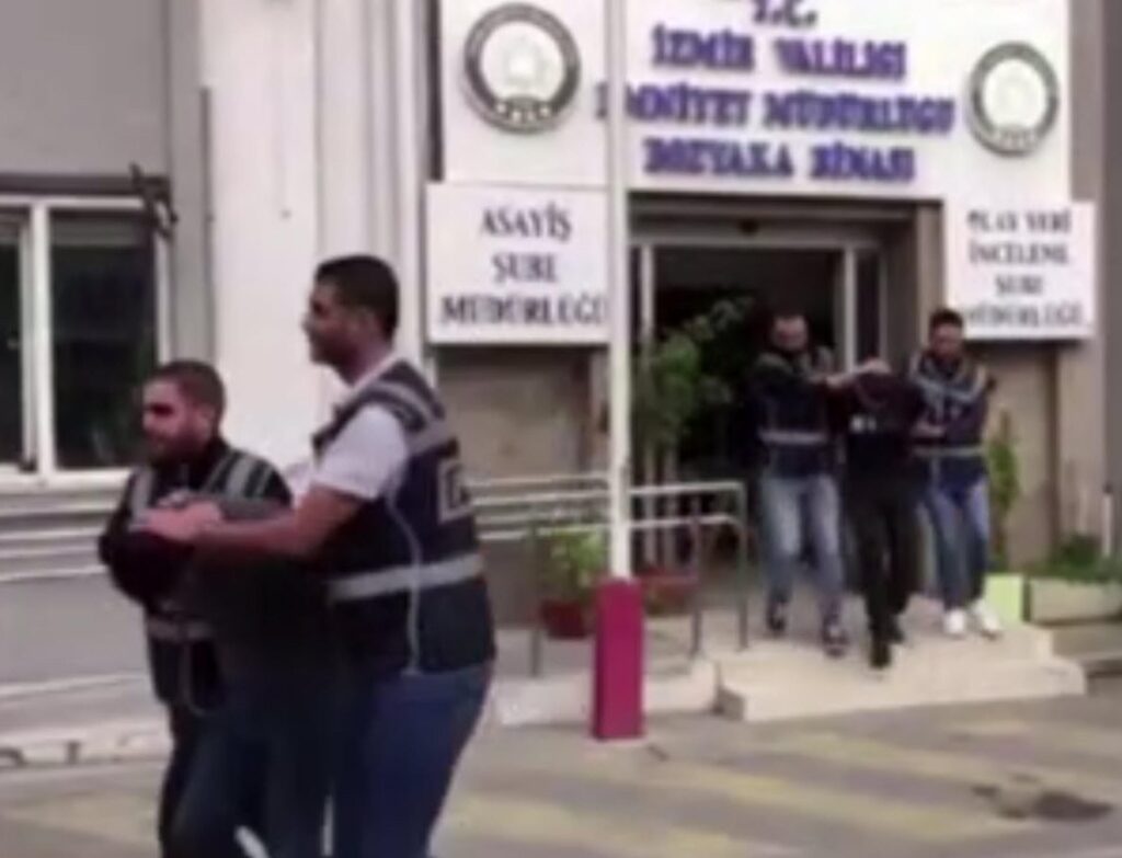 İhbarla adrese polis ekipleri sevk edildi. Bayraklı Emniyet Müdürlüğü’nde görevli polis ekipleri, şüphelileri yaklaşık 15 dakika süren takibin ardından, olay yerinden uzaklaşamadan yakalandı. Otomobildeki A.E., U. A., S. E. ve C.K. gözaltına alındı.