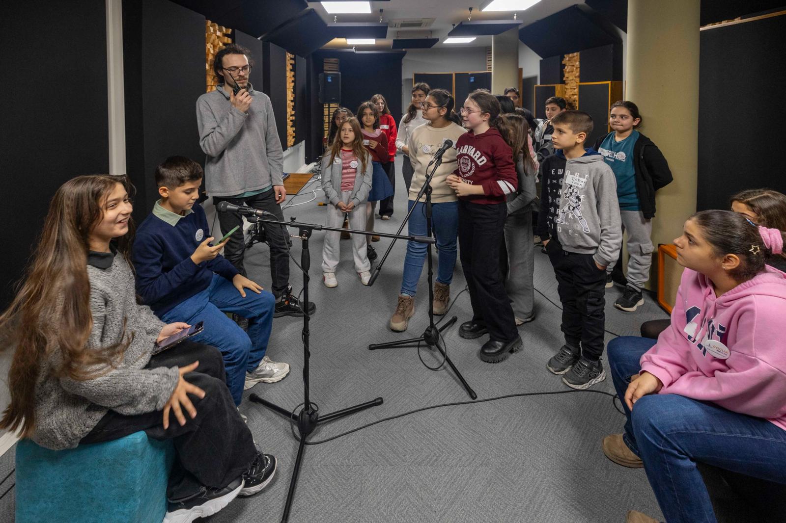 Amacımız, kültür sanatla ilgilenen çocukların Stüdyo Kültürpark’ı tanıması. Çoğu daha önce profesyonel bir kayıt odası ve profesyonel bir mikrofon görmediklerini söyledi. Çocuklar Stüdyo Kültürpark’ın nasıl çalıştığını, hangi cihazların olduğunu öğreniyor.
