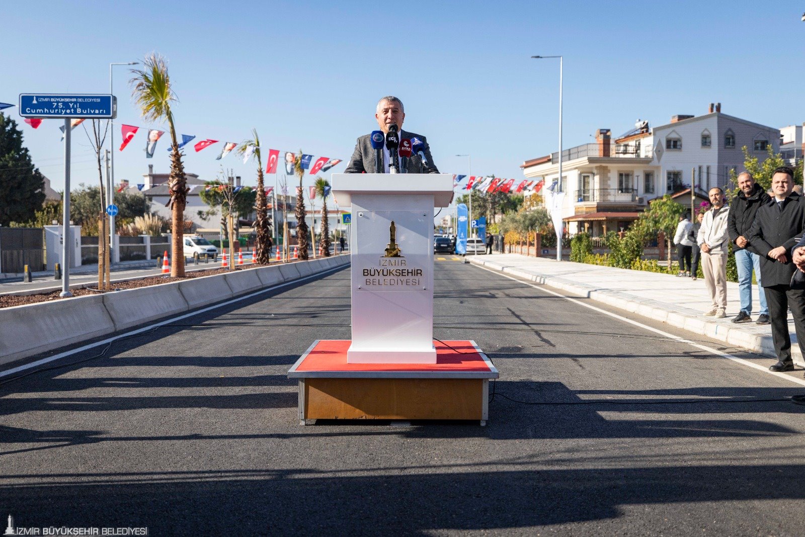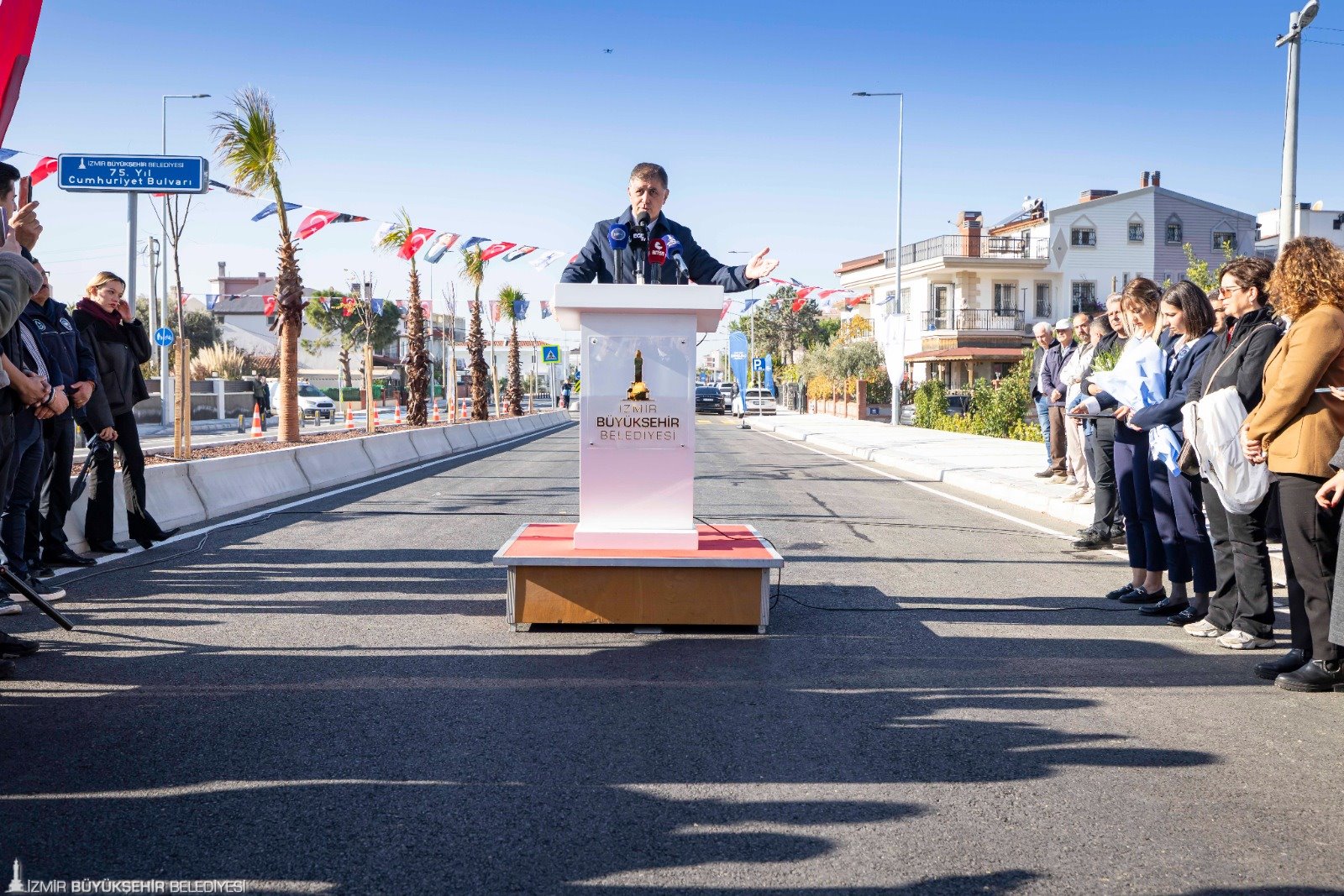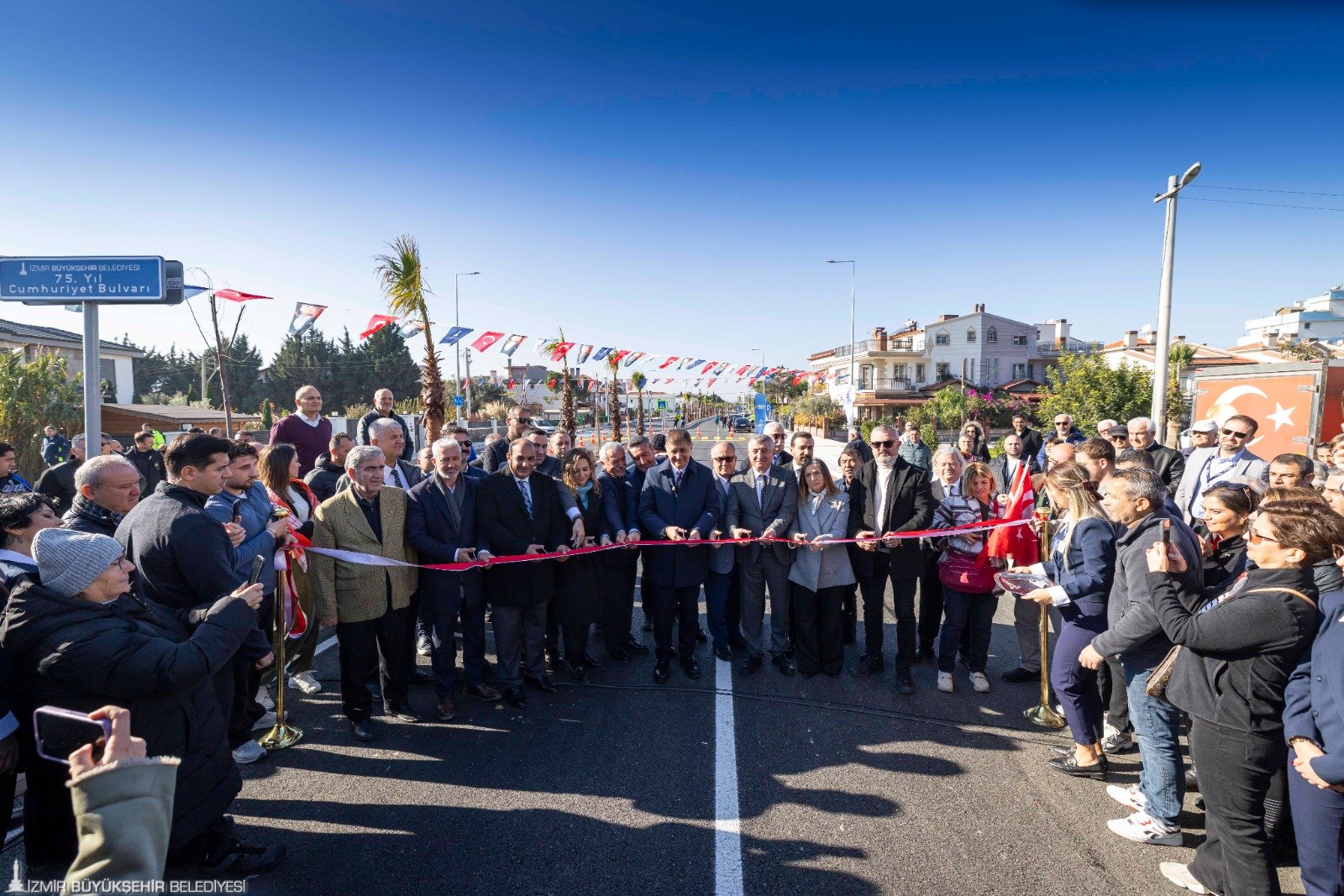 İzmir Büyükşehir Belediyesi tarafından Güzelbahçe’nin hem trafik hem de altyapı sorununu çözecek 75. Yıl Cumhuriyet Bulvarı’nın ilk etabının açılışı yapıldı.