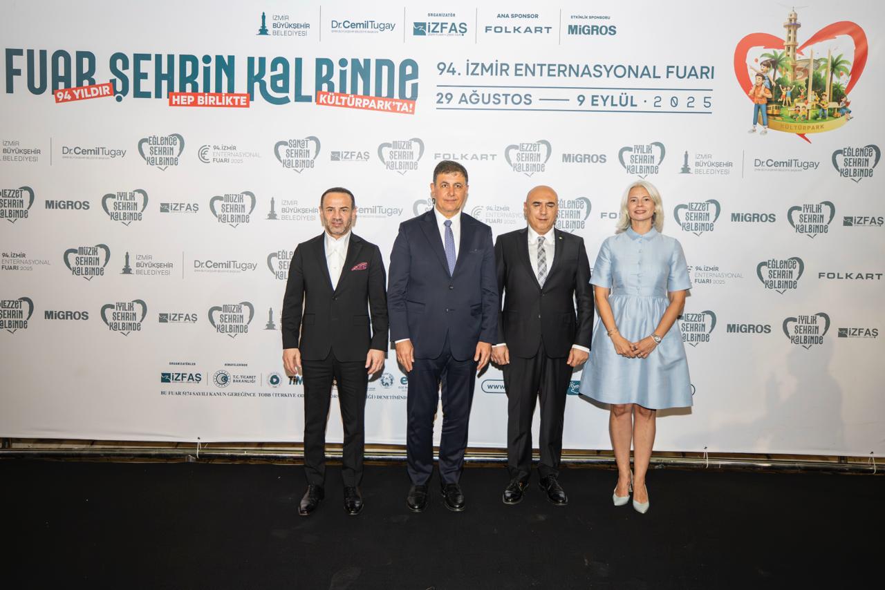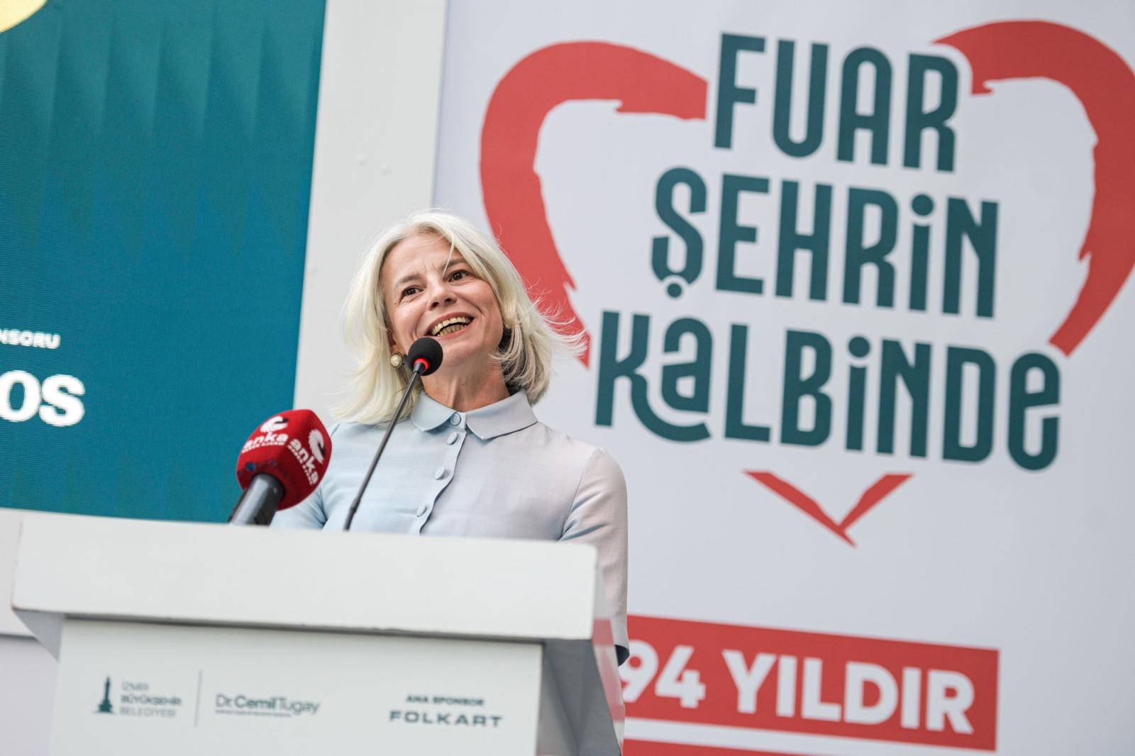 Çok güzel şeyler adım adım İzmir’de gerçekleşecek. Bugün sponsor olarak destekleri için Migros ve Folkart ailesine teşekkür ediyorum. Bu, İzmir’e destek olmaktır, sahip çıkmaktır. Şu an İzmir’e inancını yitirmiş gibi görünen kişilere biraz daha aktif olmalarını hatırlatmak istiyorum. Fuarımız hayırlı olsun. Tüm hemşehrilerimizi fuarımıza bekliyoruz. Burada mutluluk duyacakları pek çok şey görecekler. Önümüzdeki yıl inşallah 95’incisinde de çok daha güzelini hep beraber yapacağız. Bu sene için emeği geçen herkese ayrı ayrı teşekkür ediyorum” dedi.