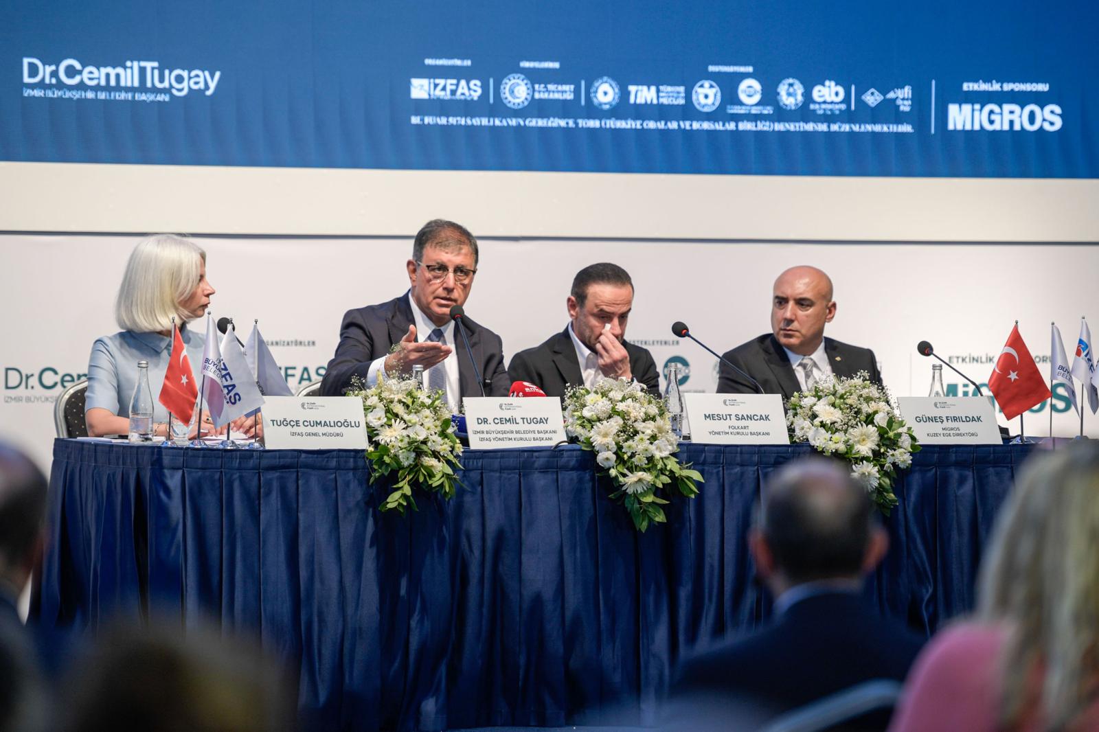 Basın toplantısında konuşan İzmir Büyükşehir Belediye Başkanı Dr. Cemil Tugay, 94’üncü İEF’nin büyük bir kortejle festival havasında başlayacağını duyurarak İzmirlilere katılım çağrısında bulundu.