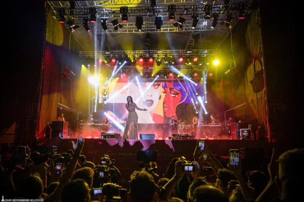 İzmir Enternasyonal Fuarı’nda orkestrasıyla sahnede unutulmaz anlar yaşatan Simge, İzmir’e sevgisini dile getirerek gençlerle doyasıya eğlendi.