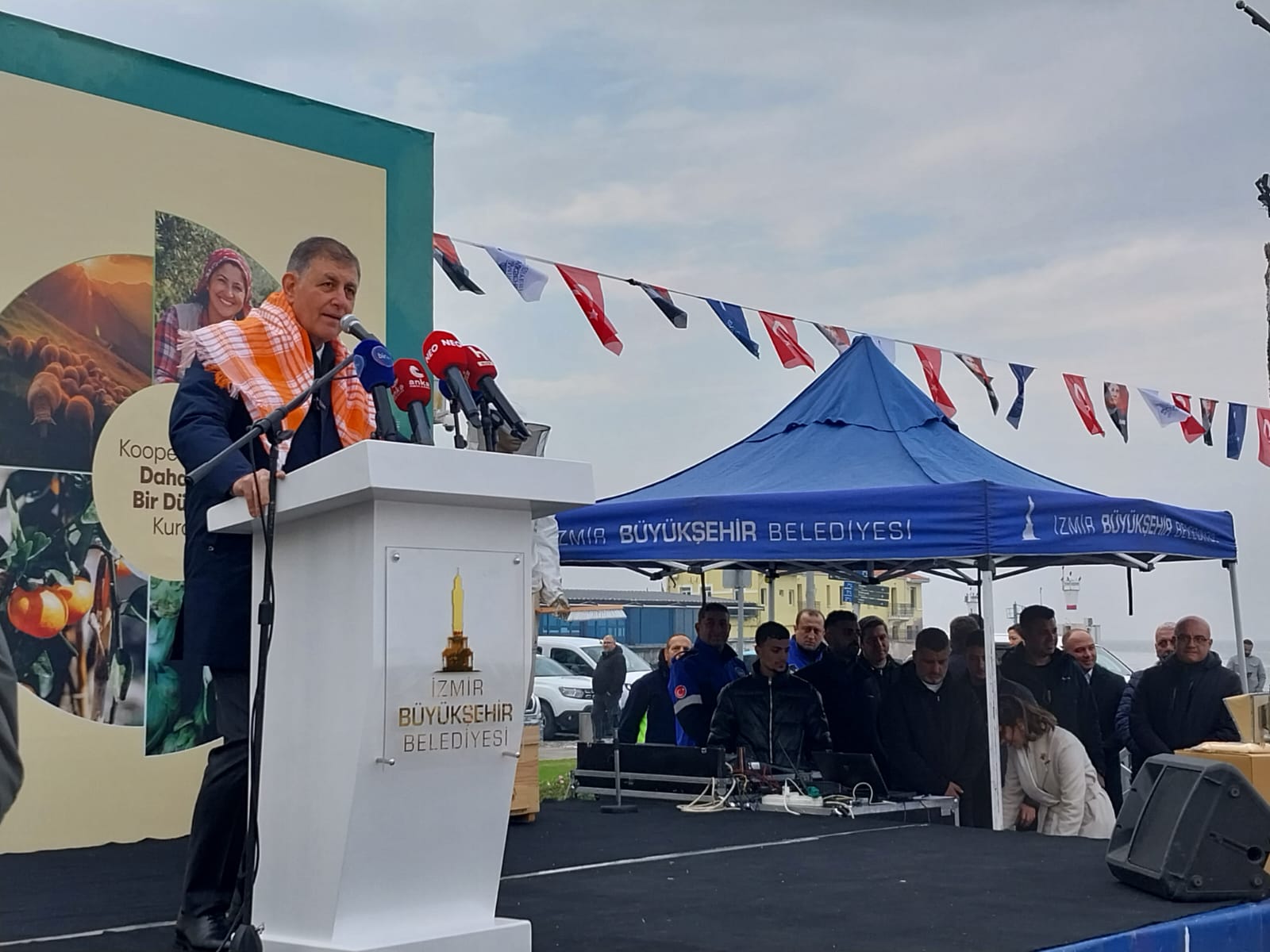 DEMOKRAT GÜNDEM- Dünya Kooperatifçilik Günü’nde üreticilerle bir araya gelen İzmir Büyükşehir Belediye Başkanı Dr. Cemil Tugay, kentin tarım ve gıda politikasında yeni bir dönemi başlattı. Üreticinin malının tarlada kalmaması ve tüketicinin ucuz gıdaya ulaşması için “aracıları kaldıran” sistemin genişletileceğini belirten Tugay, kent ekonomisine ve sosyal yaşama dokunacak üç kritik projeyi peş peşe sıraladı.