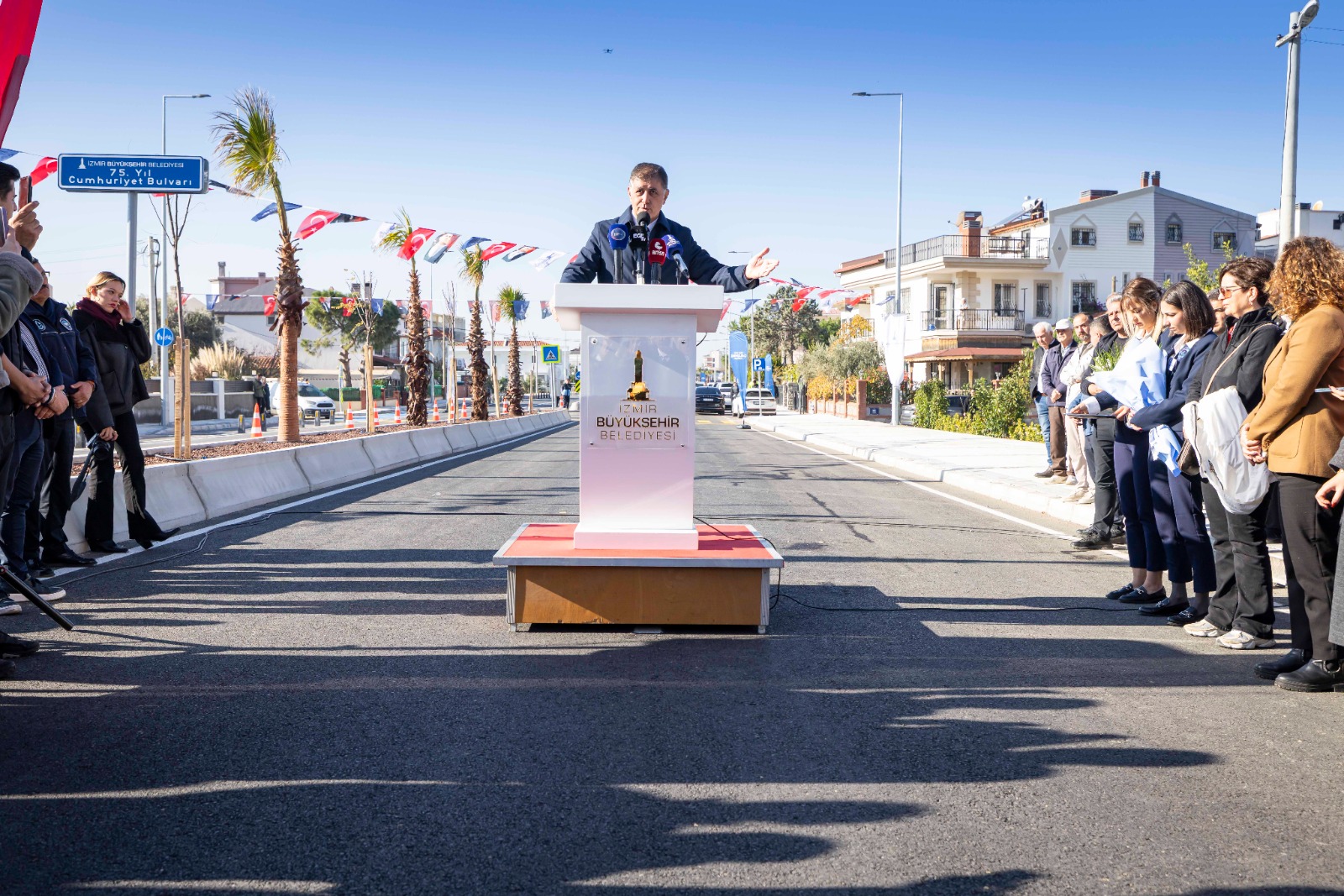 Güzelbahçe’de gerçekleştirilen 75. Yıl Cumhuriyet Bulvarı açılış töreninde konuşan Başkan Dr. Cemil Tugay, İzmir ulaşımının geleceğine dair çok konuşulacak projeleri kamuoyuyla paylaştı.