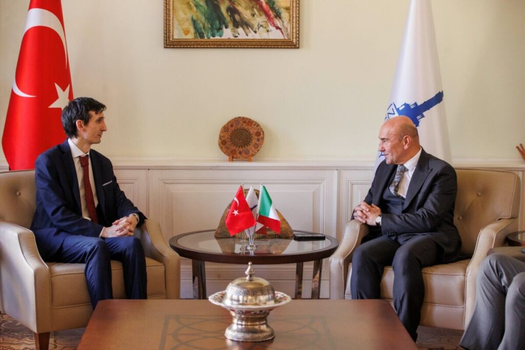 İtalya’nın İzmir Konsolosu Daniele Bianchi, İzmir Büyükşehir Belediye Başkanı Tunç Soyer’i makamında ziyaret etti.