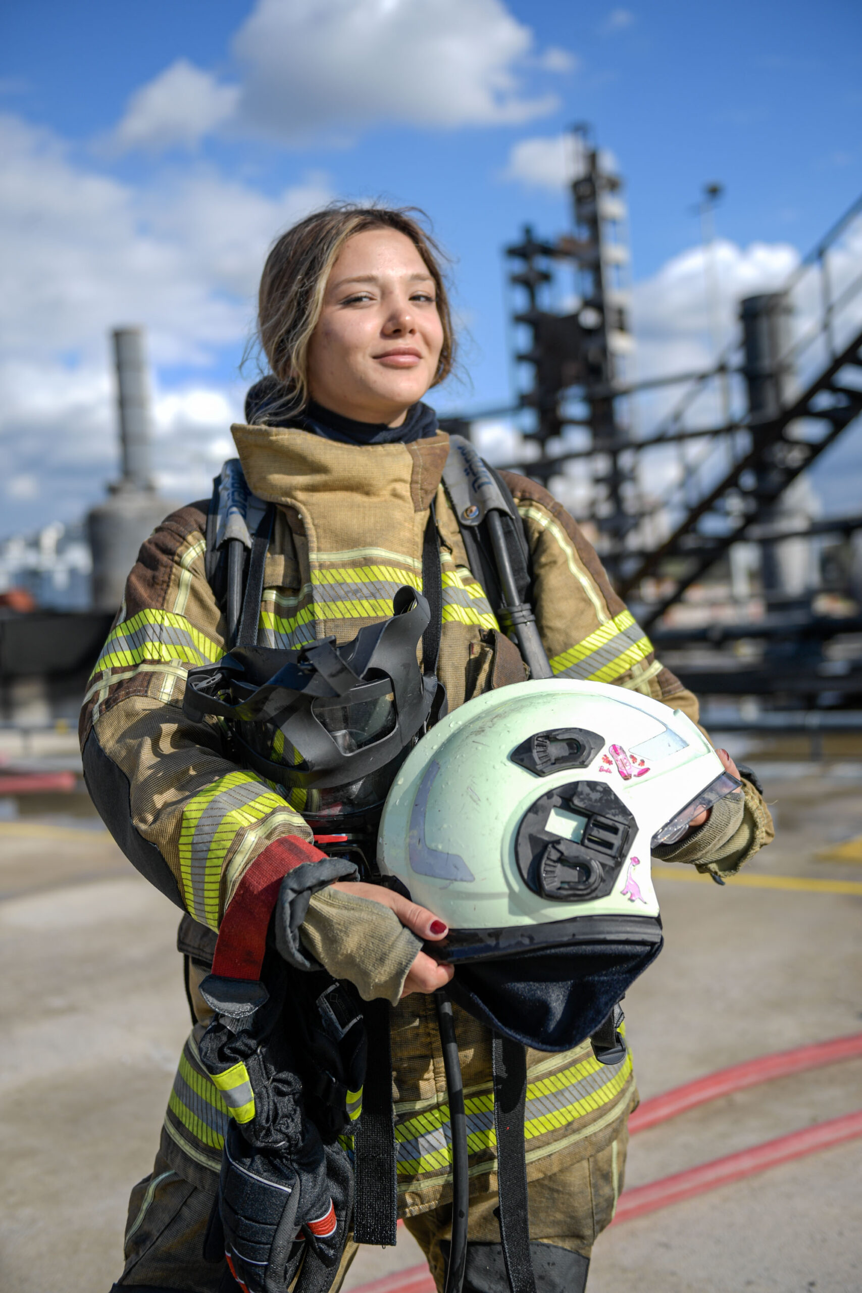Alevlerle mücadele etme tekniklerini öğrenen Şeyma Genç de “Alev suratıma kadar yaklaştığında çok heyecanlandım. Isıyı hissettiğim anlarda biraz zorlandım ama genel olarak eğitimler çok iyi gidiyor. Gerçeğe yakın eğitimler alıyoruz. Alevlerle gerçekten yüz yüze geliyoruz. Mesleğimi yaparken alevlerle mücadele edeceğim. O nedenle sahaya tam anlamıyla donanımlı çıkmak için aldığımız eğitimlerle kendimizi geliştiriyoruz” dedi.