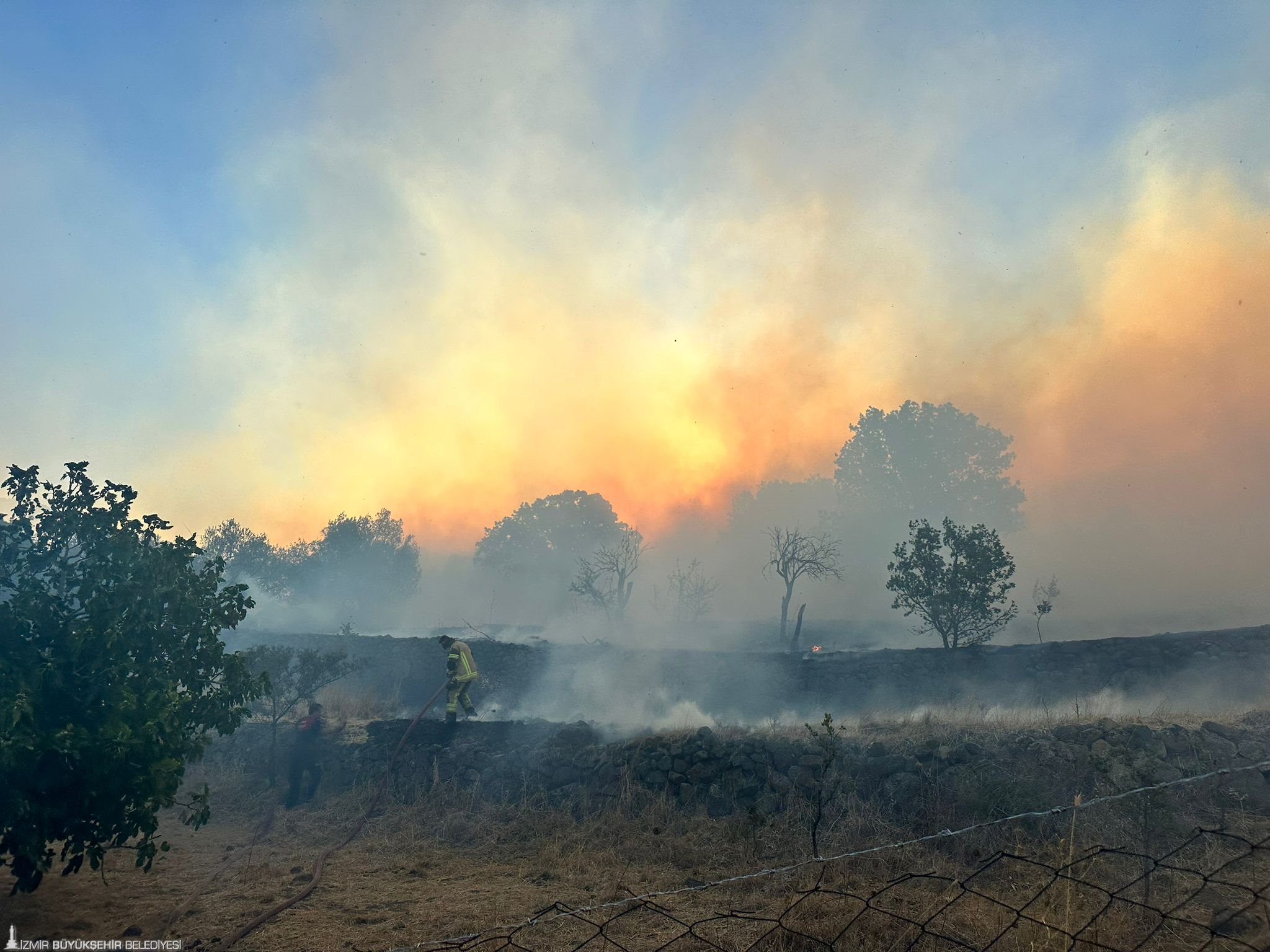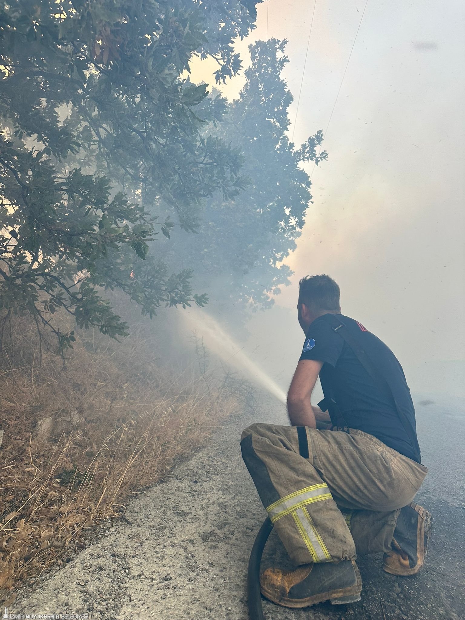Saat 02.45’de yapılan ihbarın ardından olay yerine ulaşan İzmir Büyükşehir Belediyesi İtfaiyesi’nin 18 araç ve 54 personeli, Orman Bölge Müdürlüğü ekipleri ile birlikte alevlere müdahalede bulundu.