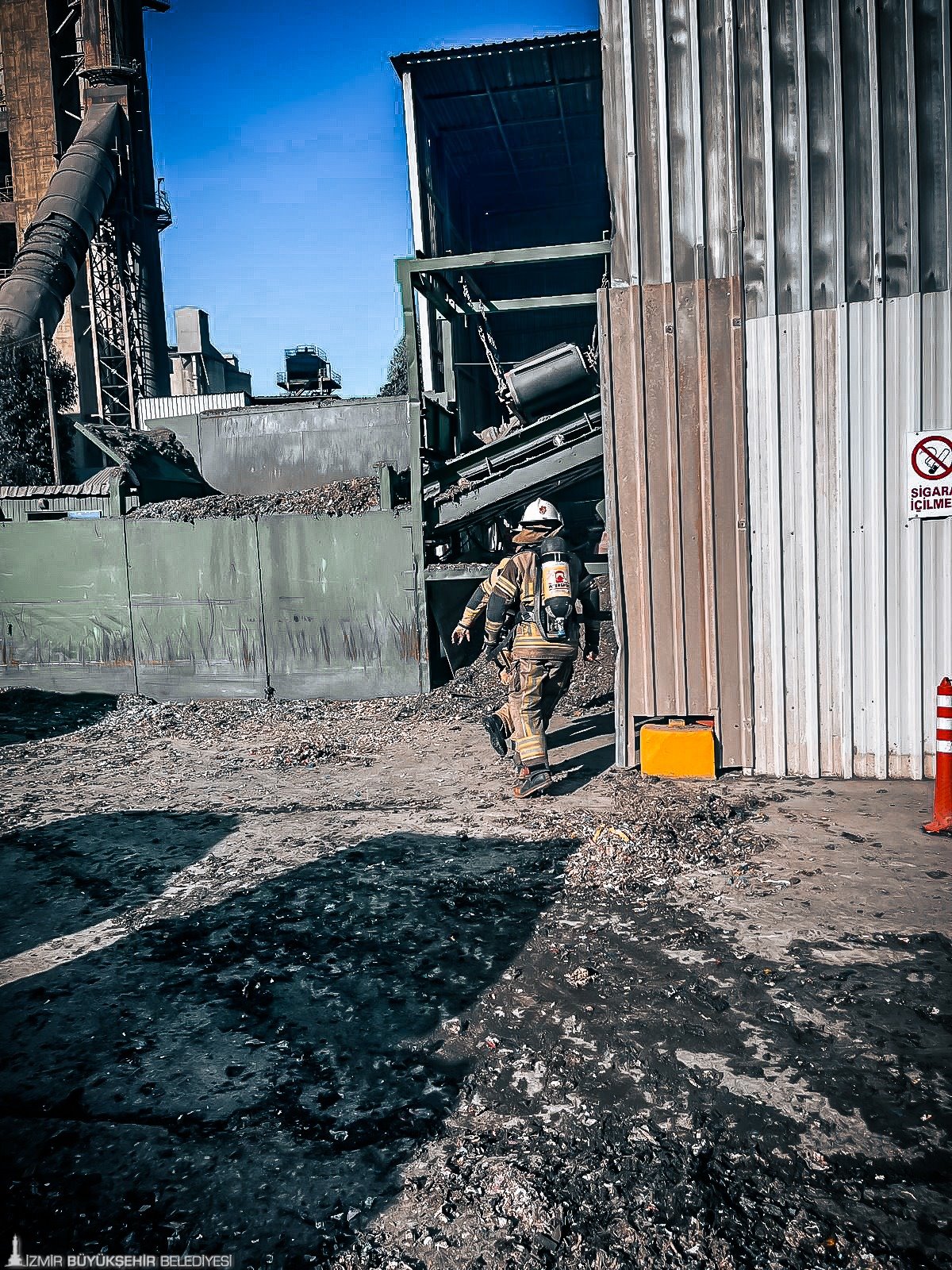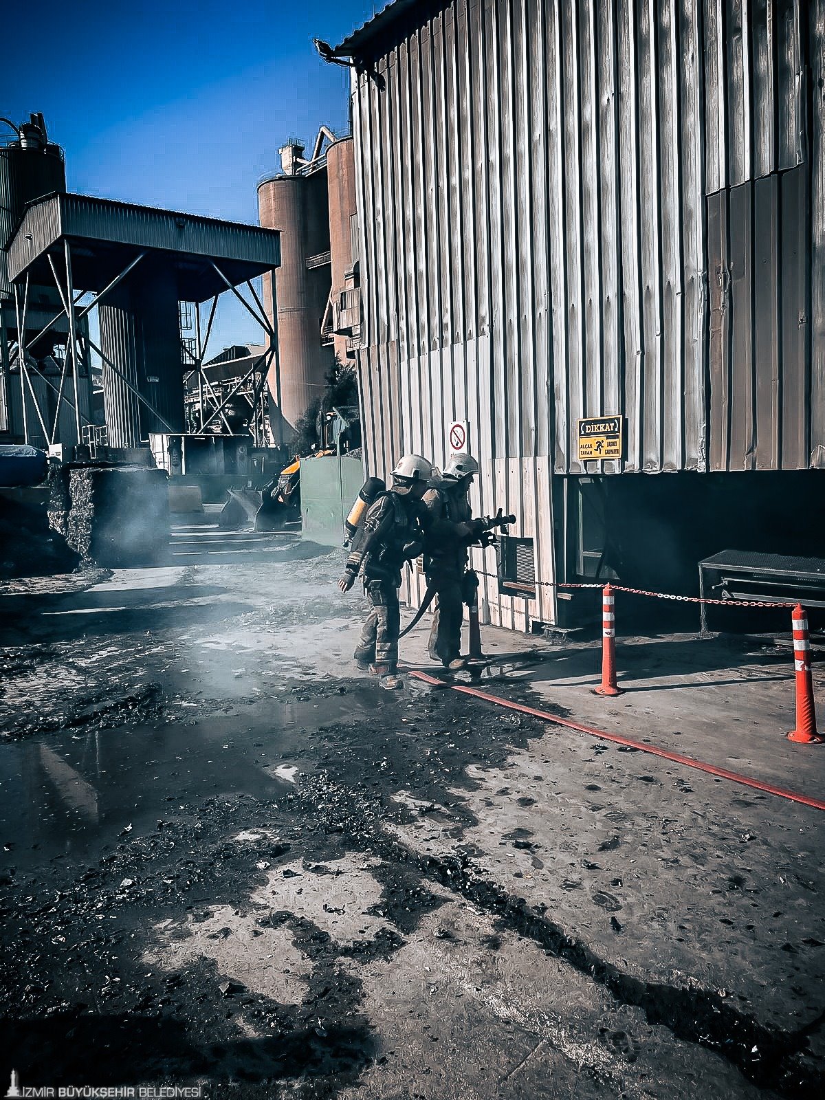 İzmir Büyükşehir Belediyesi itfaiye ekipleri, Bornova’da faaliyet gösteren bir çimento fabrikasında olası yangın ve acil durumlara hazırlık amacıyla yangın, arama ve kurtarma tatbikatı gerçekleştirdi.
