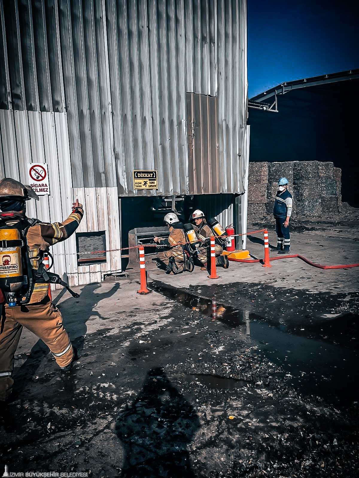 İzmir Büyükşehir Belediyesi İtfaiye Dairesi Başkanlığı, sanayi tesislerinde meydana gelebilecek olası yangınlara karşı hazırlıkları güçlendirmek amacıyla Bornova Işıklar Mahallesi’nde faaliyet gösteren Çimentaş Fabrikası’nda yangın, arama ve kurtarma tatbikatı yaptı.