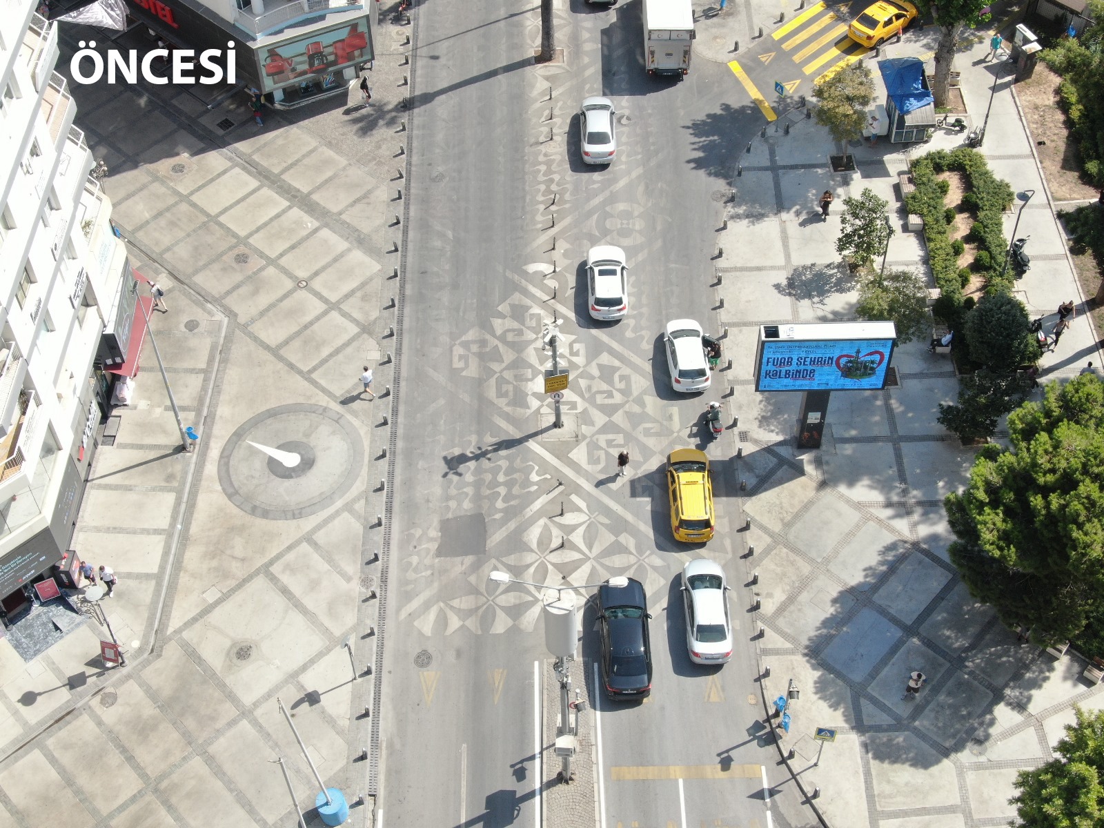 Engelli ve yaşlı vatandaşların erişimi göz önünde bulundurularak yol ve kaldırımların aynı seviyede olduğu platformla yaratılan mini meydan, görsel açıdan da kente renk katıyor.