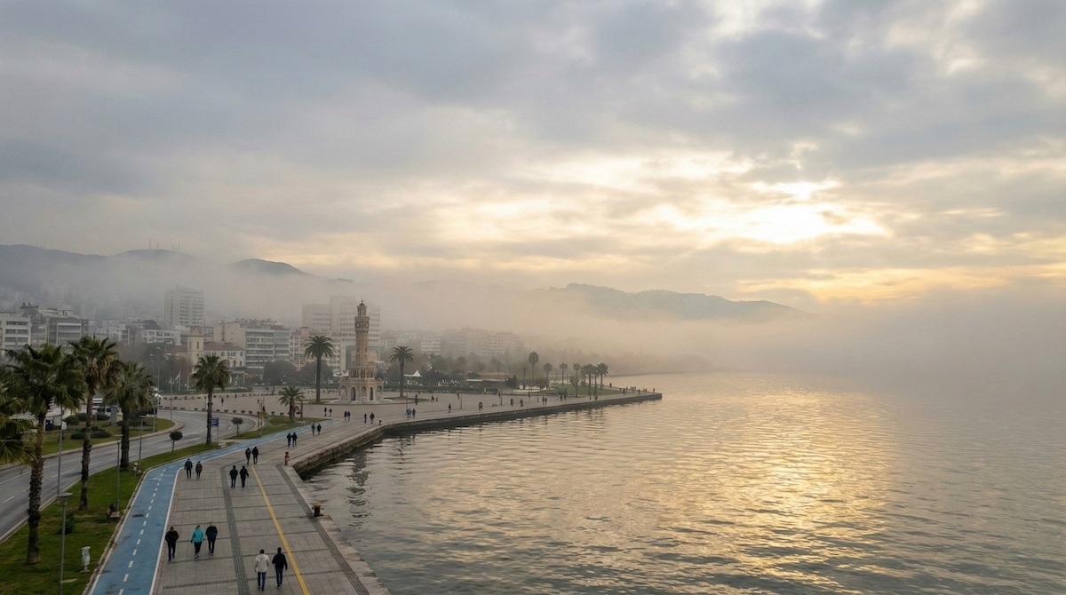 DEMOKRAT GÜNDEM – Kış mevsiminin kendini hissettirdiği Aralık ayında İzmir güne gri ve puslu bir manzarayla başladı. Sabah saatlerinde görüş mesafesini kısmen etkileyen ve kente melankolik bir hava katan pus günün ilerleyen saatlerinde yerini parçalı bulutlu bir gökyüzüne bırakacak.