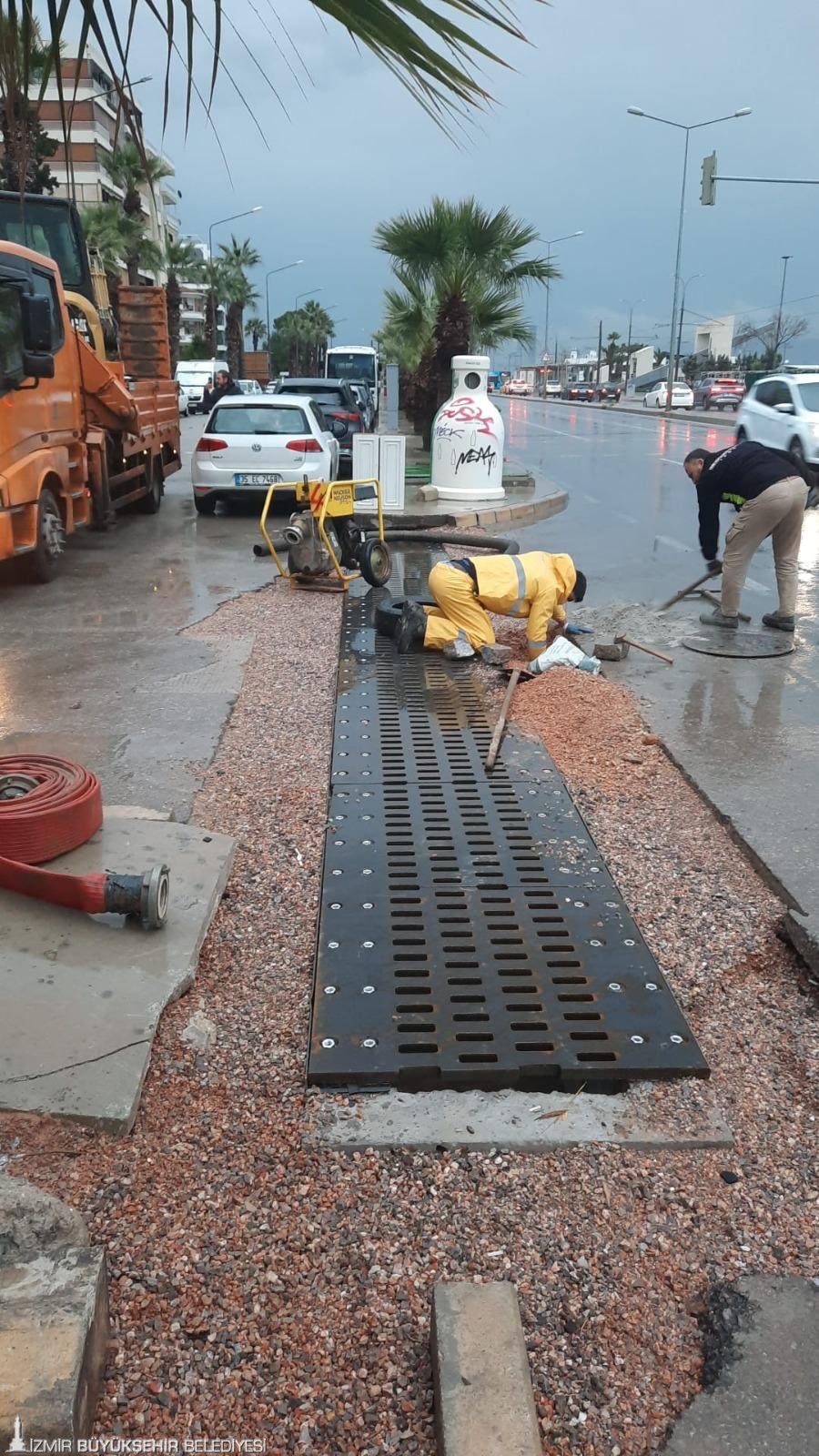 Ekipler başta Konak, Karabağlar, Bornova, Bayraklı, Karşıyaka, Buca, Gaziemir, Çiğli ve Menemen olmak üzere yağıştan etkilenme riski bulunan bölgelerde yağmur suyu ızgaralarının temizliği, hat kontrolleri ve ani taşkınlara karşı önleyici müdahalelerini sürdürdü.
