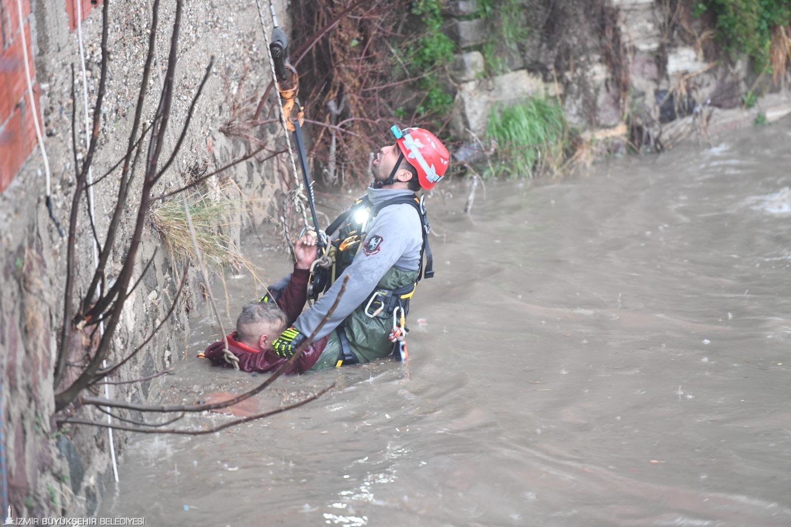 İzmir’de etkili olan sağanak yağış sırasında, 50–55 yaşlarındaki bir erkek Yeşildere’de dere içinde uyuduğu sırada yükselen sulara kapıldı.