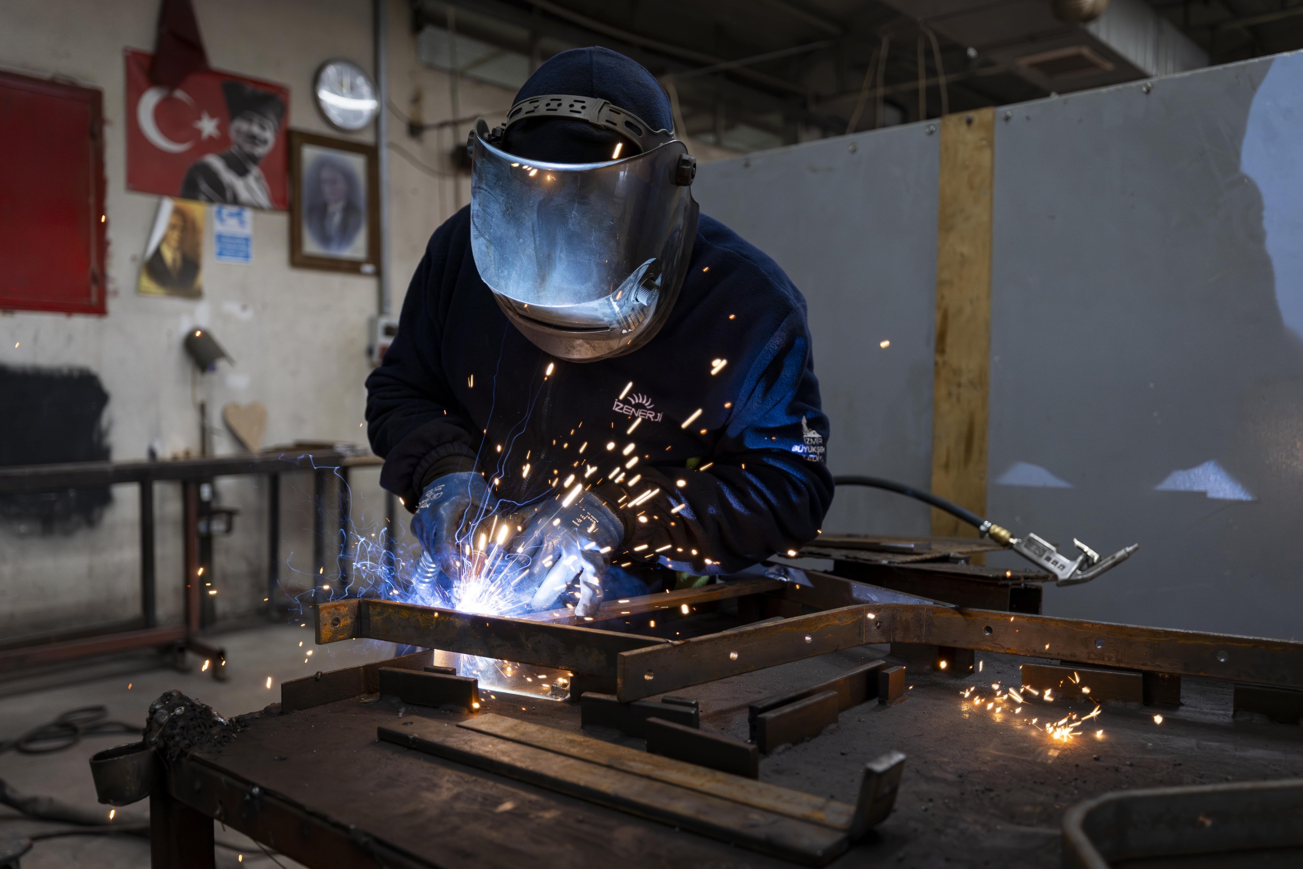 Çalışmalar hakkında bilgi veren Fırat Atölye Şefi Mete Kalaç, “Şu an atölyemizde İzmir genelinde kullanılan bank, çöp kovası, piknik masası, oturma grupları, oyun grupları, kondisyon grupları gibi ekipmanları üretiyoruz. Yeni tasarımlarımızda, kendi atölyemizde imal ettiğimiz küllüklü çöp potalarımız var.