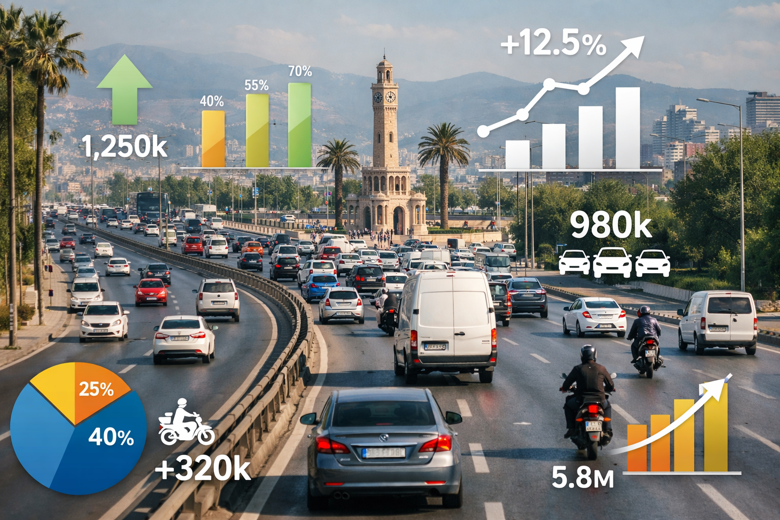 Türkiye İstatistik Kurumu (TÜİK), merakla beklenen kasım ayı motorlu kara taşıtları istatistiklerini açıkladı. Verilere göre İzmir’de trafiğe kayıtlı araç sayısı, geçen yılın aynı dönemine göre yüzde 7,4 artış göstererek 2 milyon 83 bin 71’e ulaştı. Kent, araç yoğunluğunda İstanbul ve Ankara’nın ardından Türkiye üçüncüsü oldu.