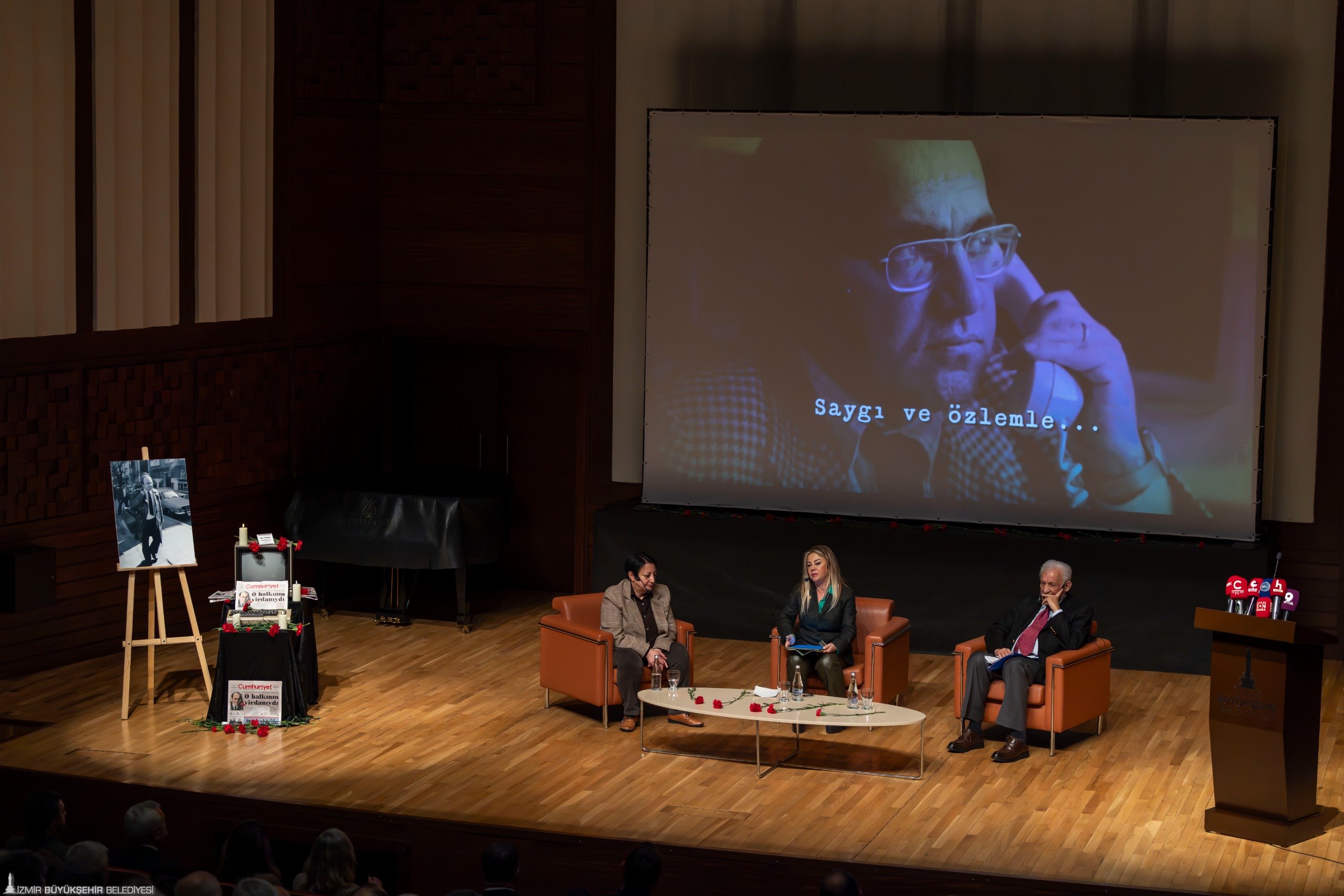 Başkan Tugay da duygulu anlar yaşadı. İzmir Şehir Tiyatroları Genel Sanat Yönetmeni Levent Üzümcü ise törende Uğur Mumcu’nun 1975 yılında Cumhuriyet gazetesinde çıkan “Sesleniş” yazısındaki dizeleri okudu.