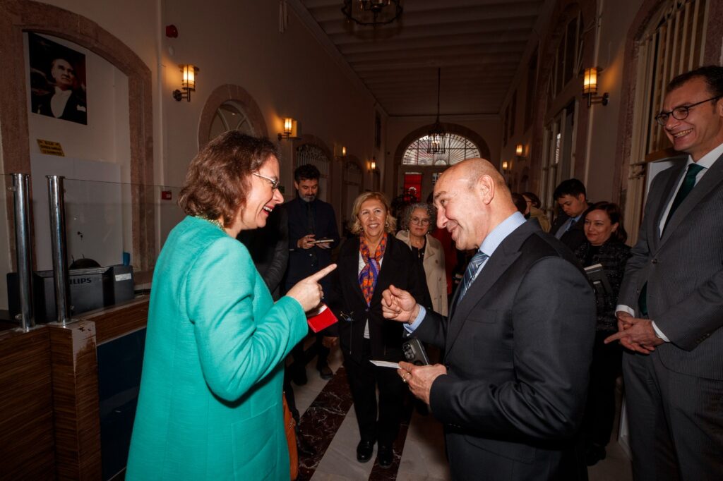 Birlikte çalışmaktan mutluluk duyduklarını ifade eden Büyükelçi Isabelle Dumont, “Gerçekleştirdiğiniz projeler ve alternatif finansman kaynakları yaratılmasındaki rolünüz için kutluyorum. Her zaman İzmir ile çalışmaya hazırız. Gelecekte ulaşım, su ve atık yönetimi, temiz enerji sektörlerindeki projelerin finansmanına dair 100 milyonluk euroluk bir bütçe ayırdık” diye konuştu. Dumont, eğitim alanında da işbirliği yapabileceklerini söyleyerek “Fransız Kültür Merkezi’yle işbirliği yapılabilir, dil öğretim kurslarını desteklemeye hazırız” dedi.