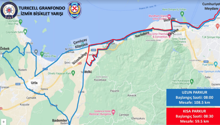 “Turkcell Granfondo İzmir Bisiklet Yarışı etkinliği kapsamında, 22 Ekim 2023 Pazar günü 06.00 – 15.00 saatleri arasında ilimizdeki trafik akışı aşağıdaki şekilde düzenlenecektir: