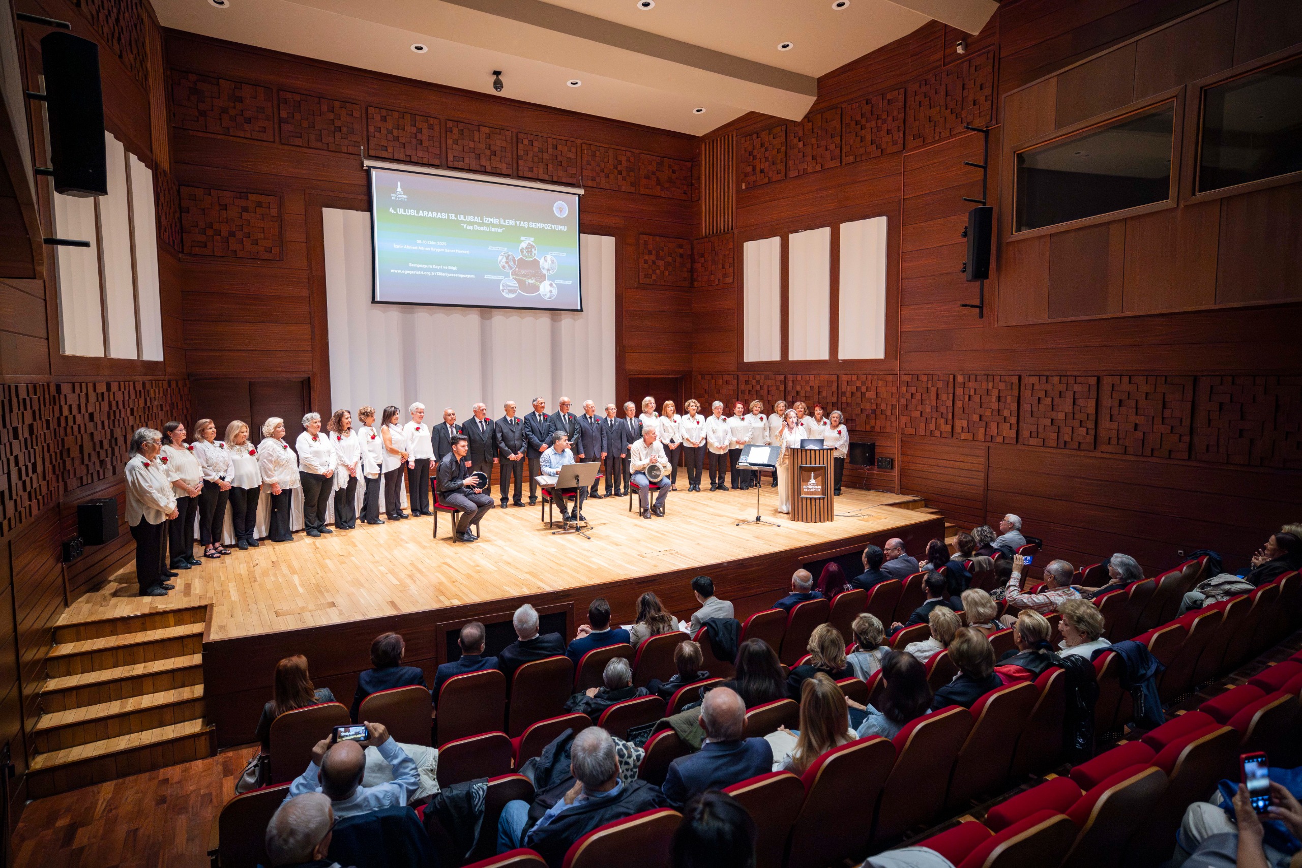 Bu yıl “Yaş Dostu İzmir” temasıyla iki gün boyunca Ahmed Adnan Saygun Sanat Merkezi’nde (AASSM) sürecek sempozyuma İzmir Büyükşehir Belediyesi Başkan Vekili Dr. Zafer Levent Yıldır, Ege Geriatri Derneği Başkanı psikolog Mevlüt Ülgen ve dernek yöneticileri, Büyükşehir Belediyesi bürokratları ile meclis üyeleri, sivil toplum örgütlerinin temsilcileri, akademisyenler ve ileri yaşlı bireyler katıldı. Sempozyum öncesinde Ege 3. Yaş Üniversitesi Korosu, konseriyle müzik ziyafeti sundu.