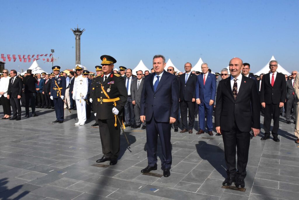 İzmir Valisi Süleyman Elban, makamında tebrikleri kabul ettikten sonra Cumhuriyet Meydanı’nda resmi geçit töreni düzenlendi. Törene Vali Süleyman Elban, İzmir Büyükşehir Belediye Başkanı Tunç Soyer, Ege Ordusu ve Garnizon Komutanı Korgeneral Kemal Yeni, milletvekilleri, siyasi parti başkanları, üniversite rektörleri, idari ve askeri erkan ile vatandaşlar katıldı.